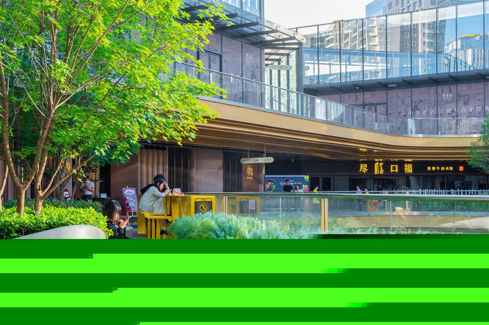Through the detailed design of the terrace space and the implantation of landscape facilities, we change the perspective of the terrace space from "architectural grand narrative" to "landscape detail experience". And this kind of detail experience is the key to the success of contemporary commercial space.