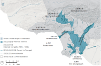 洛杉磯河當前的洪水管理系統(tǒng)旨在當遇到大雨或暴雨時,能盡快將水排入海洋,以防止城市中遭受洪澇災害;同時在更頻繁的小型降雨事件中,可以留住寶貴的雨水資源以補給地下水。河道的混凝土和橋墩的設計能減小摩擦力,使水可以快速流動。若想將此兩用系統(tǒng)重新建設為一個具有多重效益的河流系統(tǒng),就需要精確了解這些河道的工程設計。