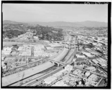 從19世紀后期到20世紀初期,隨著洛杉磯河流域內城市的迅速擴張,城市開發(fā)開始慢慢逼近河流。與此同時,人們修建了灌溉渠道,并適度改變逐漸渠化了河流。然而,之后幾年,河水泛濫,重新變寬的洪泛平原,警告著人類洛杉磯河強大的自然力量。