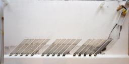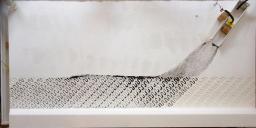 首輪測(cè)試僅對(duì)單獨(dú)改變路緣面或路肩表面設(shè)計(jì)進(jìn)行考察。在銑削全尺寸模型之前,團(tuán)隊(duì)測(cè)試了不同的銑削密度和深度以了解雕刻機(jī)的作業(yè)極限。團(tuán)隊(duì)對(duì)每種路緣或路肩改造方案分別進(jìn)行測(cè)試,以便了解其單獨(dú)運(yùn)作的情況,并尋求二者最佳的組合方案。團(tuán)隊(duì)將人工合成的雨水混合物傾倒在模型路面上,使之流經(jīng)路肩或路緣上的圖案凹槽,整個(gè)過程持續(xù)8分鐘。