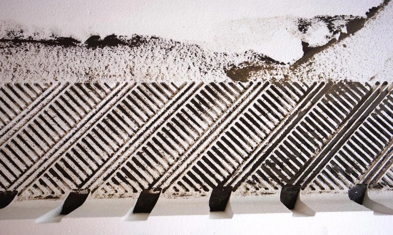 不同斜線圖案沿線條走向的凹陷深度不同。? Halina Steiner, Ryan Winston