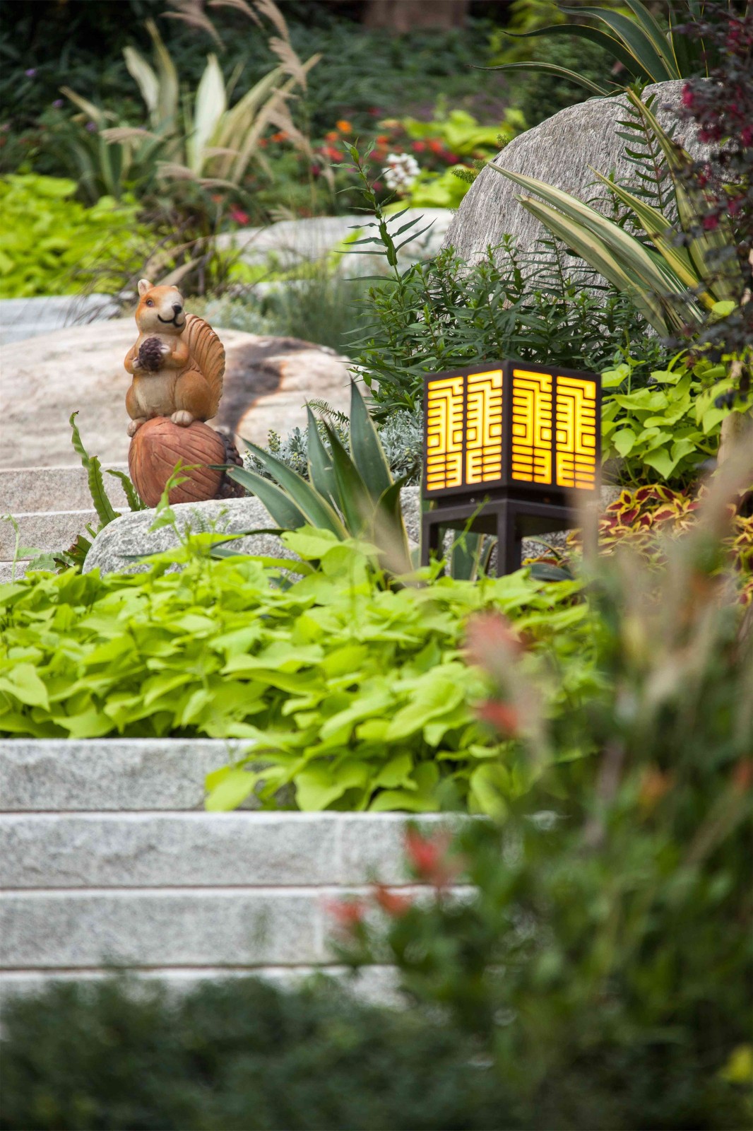 設(shè)計(jì)師更是在動(dòng)態(tài)景觀中穿插、點(diǎn)綴靜態(tài)景觀,使整個(gè)景觀結(jié)構(gòu)動(dòng)靜有序而又豐富多姿,并根據(jù)景觀不同規(guī)模分別處理適應(yīng)兒童和成人的尺度,細(xì)部完善,著實(shí)將藝術(shù)賦予每個(gè)景觀設(shè)計(jì)細(xì)節(jié)以靈魂。