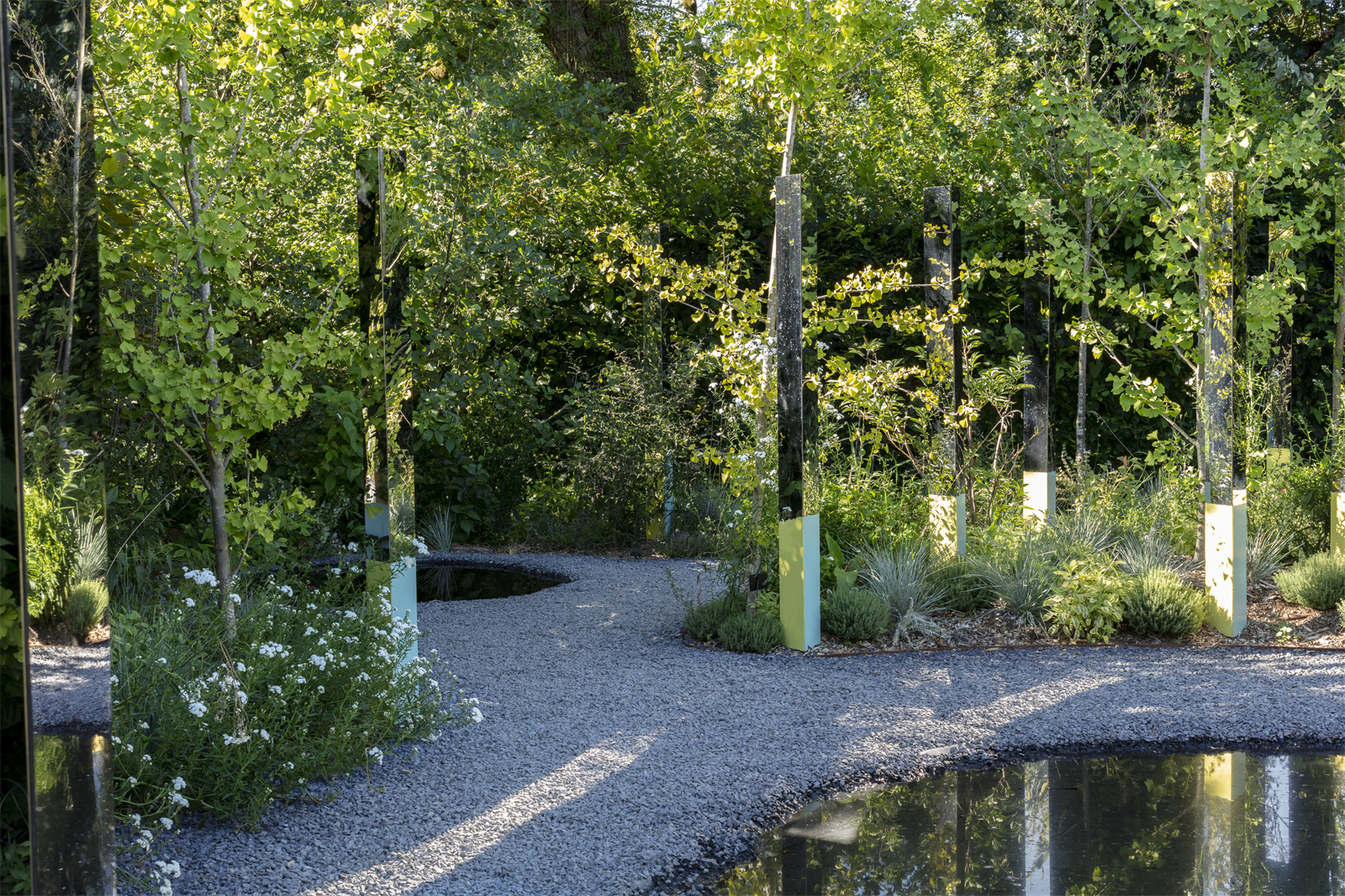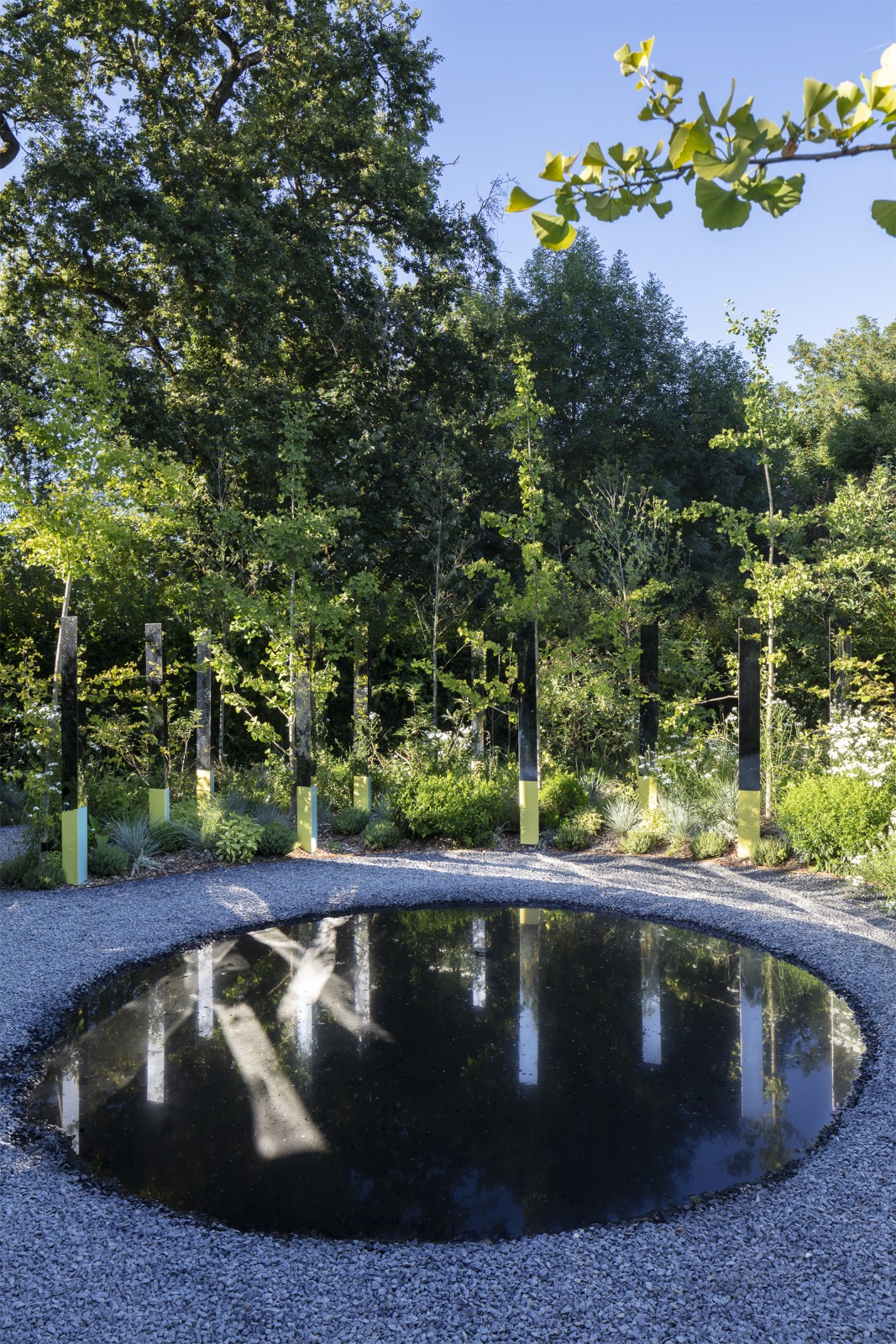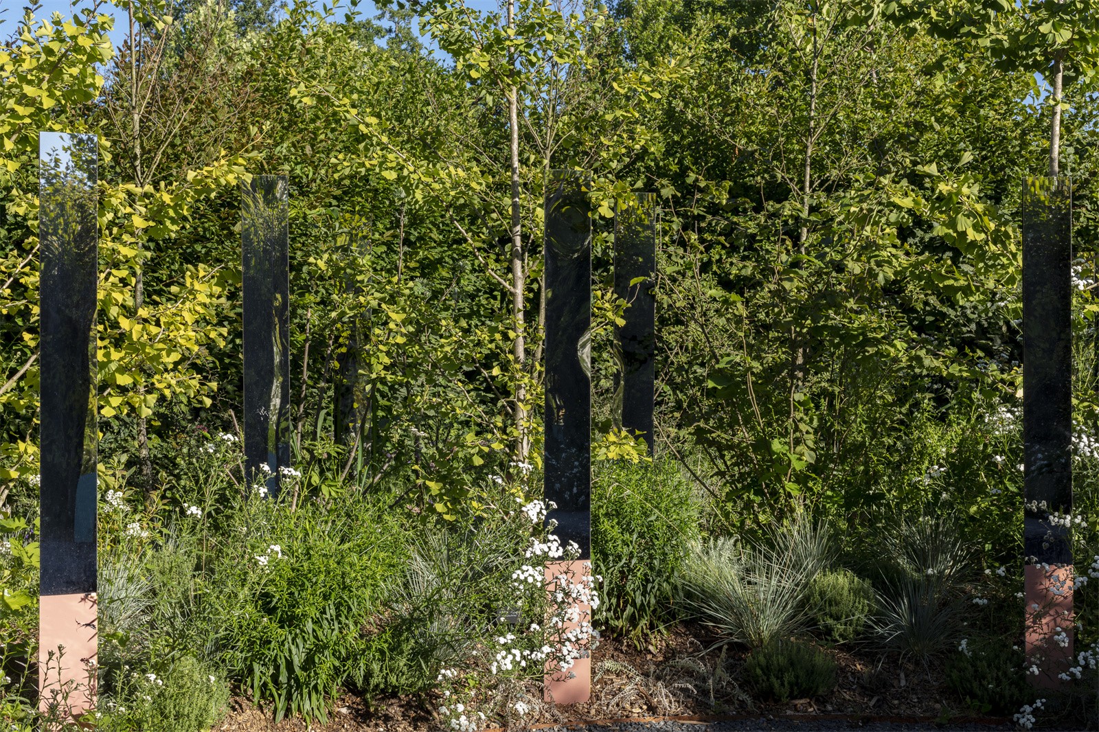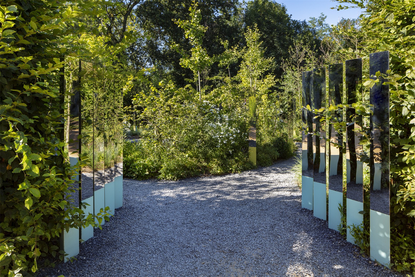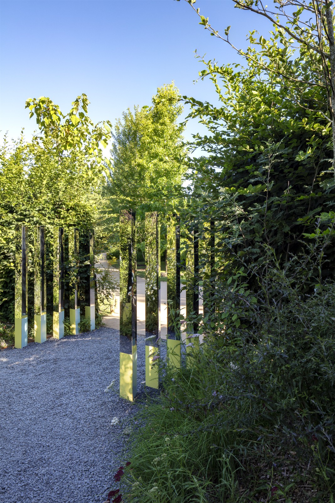 The Garden of Reciprocity utilizes medias of reflection – mirrors and water – to make visitors consider their relationship to nature in different ways. The garden has been recognized with a “Design and Innovation Award” by The Domain of Chaumont-sur-Loire.