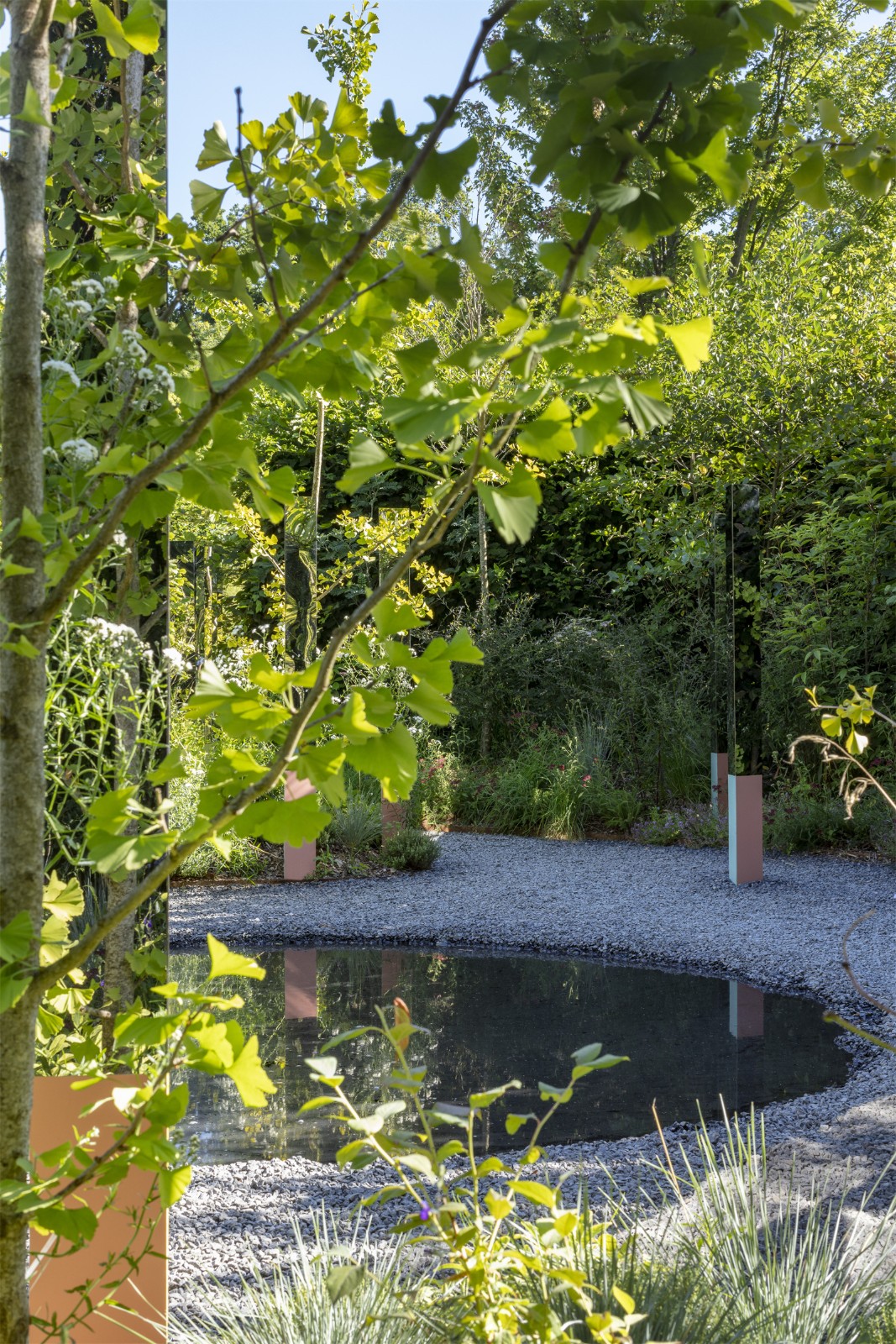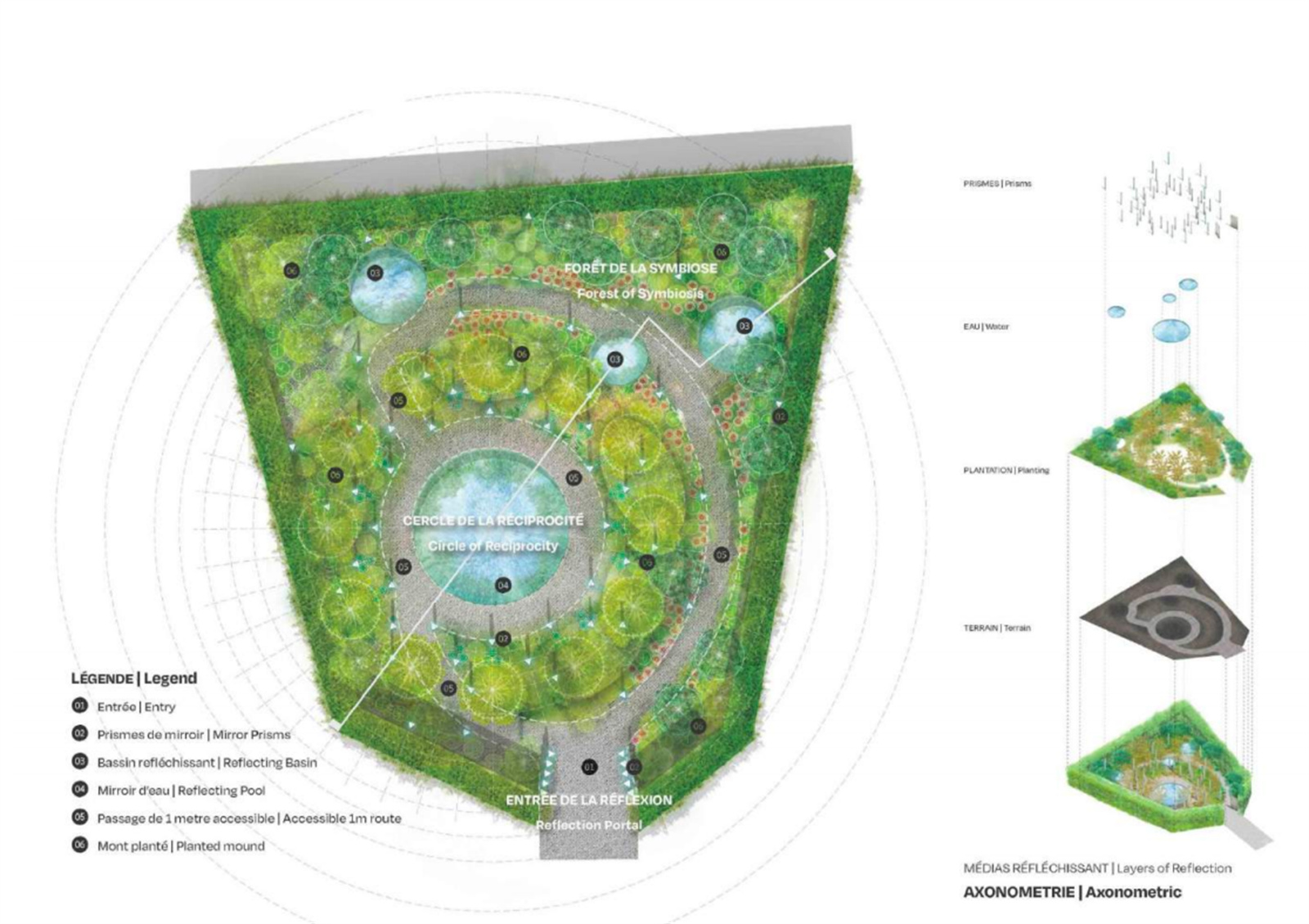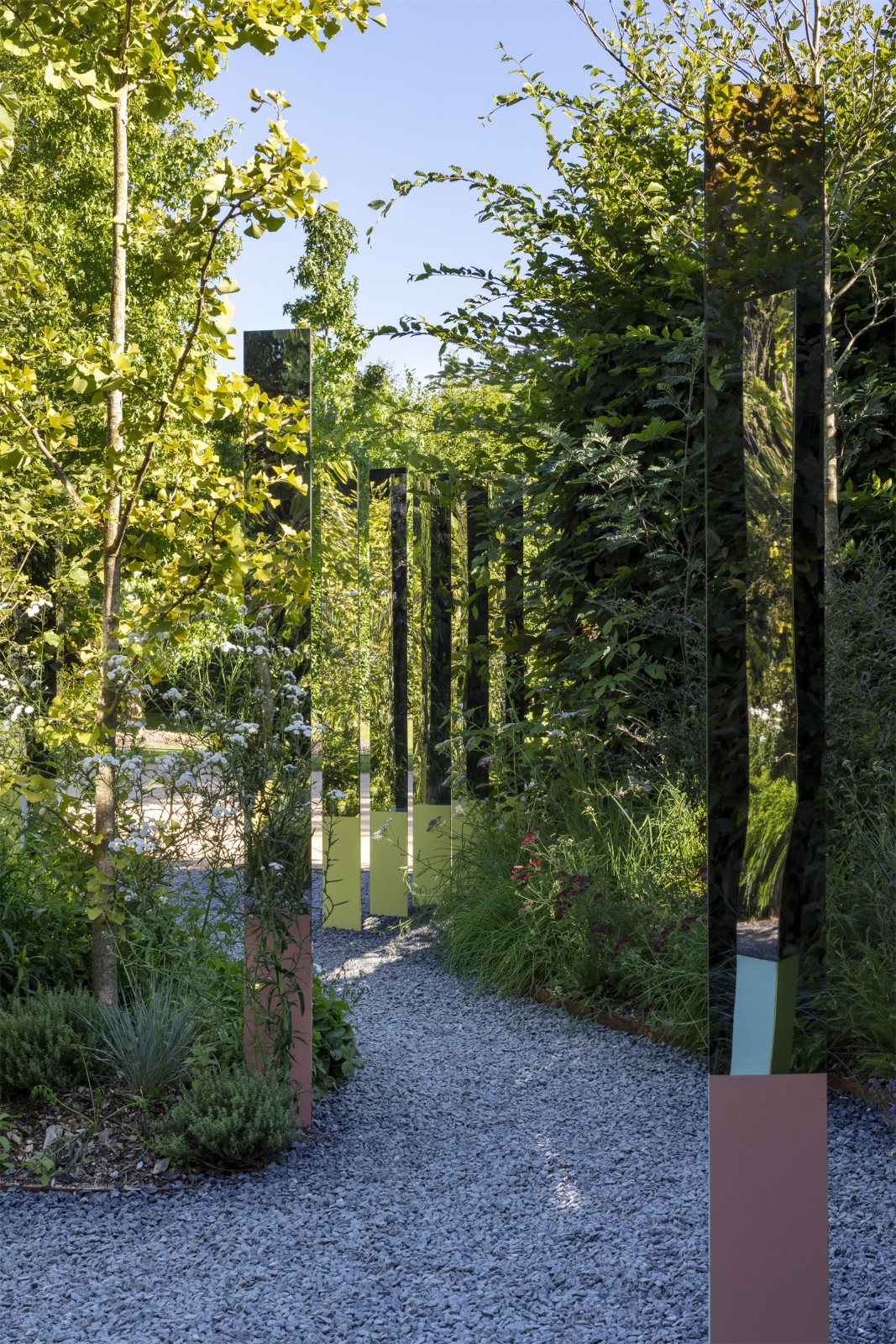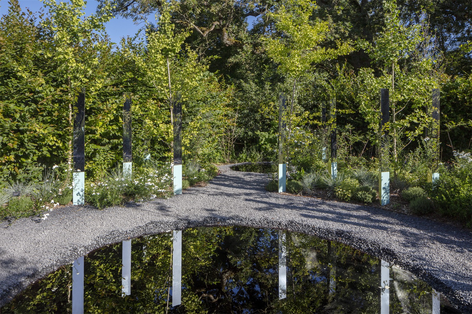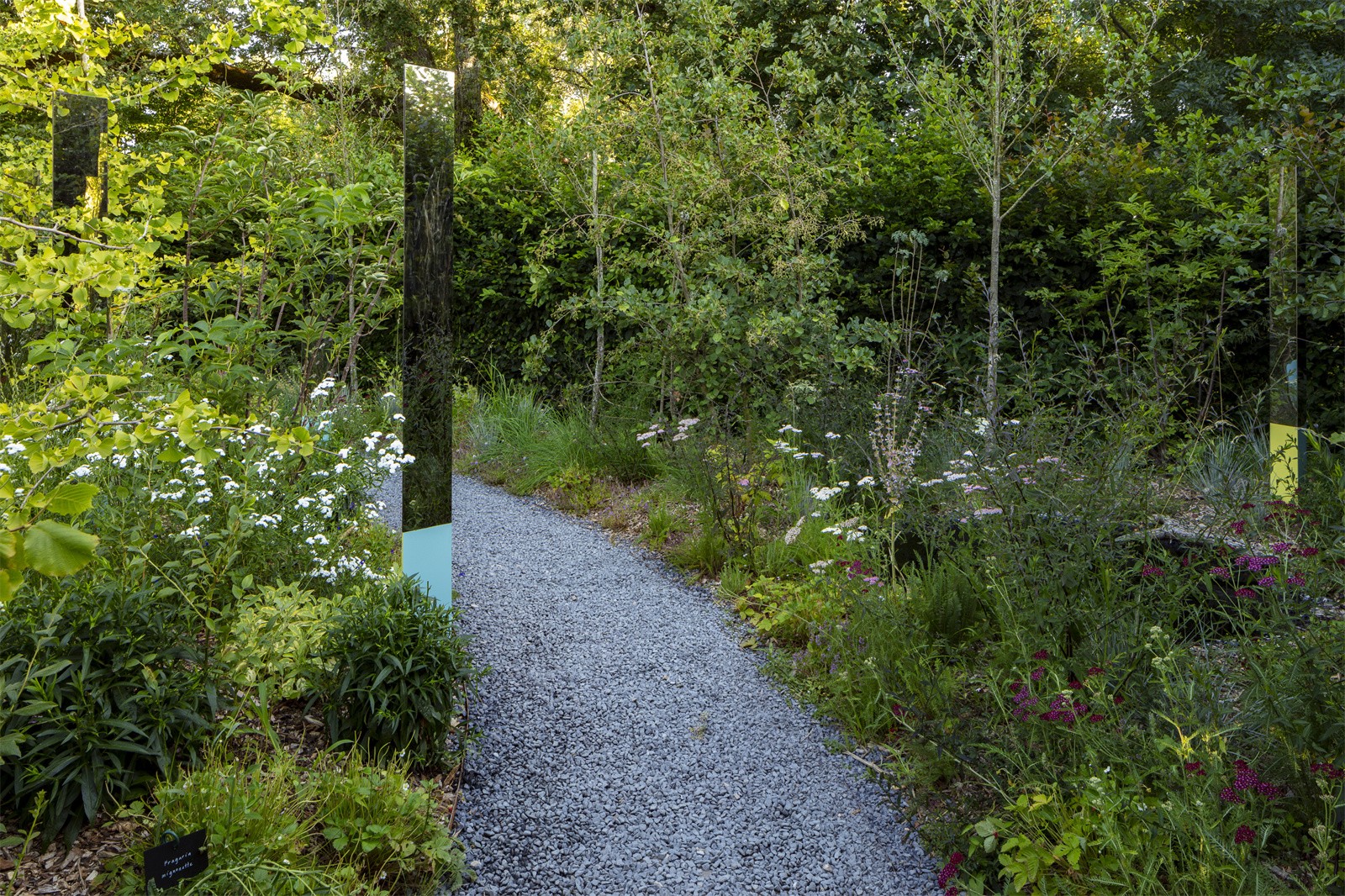 The Garden of Reciprocity utilizes medias of reflection – mirrors and water – to make visitors consider their relationship to nature in different ways. The garden has been recognized with a “Design and Innovation Award” by The Domain of Chaumont-sur-Loire.