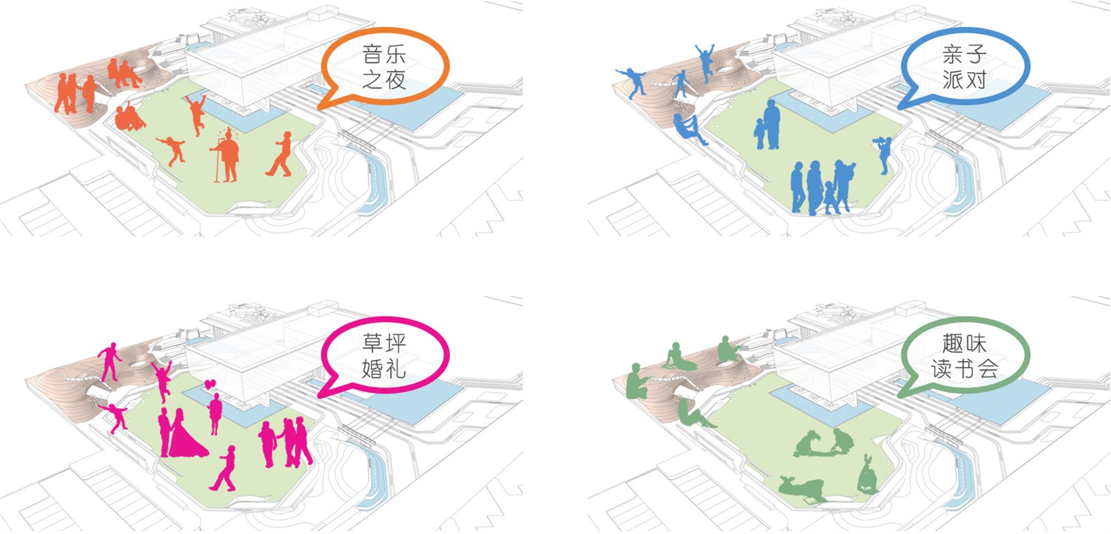 后場(chǎng)的標(biāo)高與未來(lái)大區(qū)直接銜接,臺(tái)地花園是永久使用的景觀節(jié)點(diǎn)。大大小小的花園臺(tái)地以環(huán)形路巧妙聯(lián)通,讓訪客對(duì)綠意生活的聯(lián)想得到即時(shí)實(shí)現(xiàn)。
