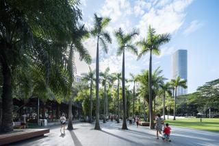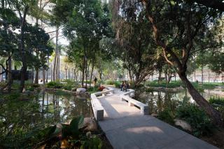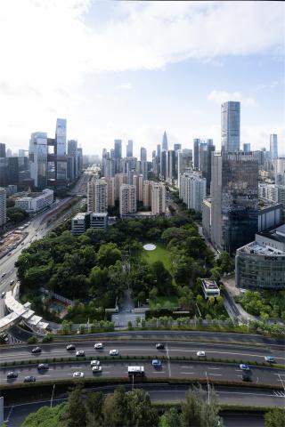 文心公園內(nèi)保留著約500株原有樹(shù)木,它們冠幅相錯(cuò),亭亭交織,宛若華蓋,在深圳漫長(zhǎng)的夏日里為游人提供自然的蔭蔽。