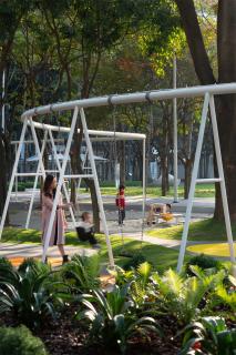 The multi-place swings, bouncy trampoline, merry-go-round, and multi-functional sports climbing frame keep children entertained. In the midst of movement and stillness, they could be enlightened and improve their physical functions, and continue to explore the boundaries of their abilities. Parents are both comfortable guardians and active participants. The place gently invites them to spend quality time with their children and make sweet memories.