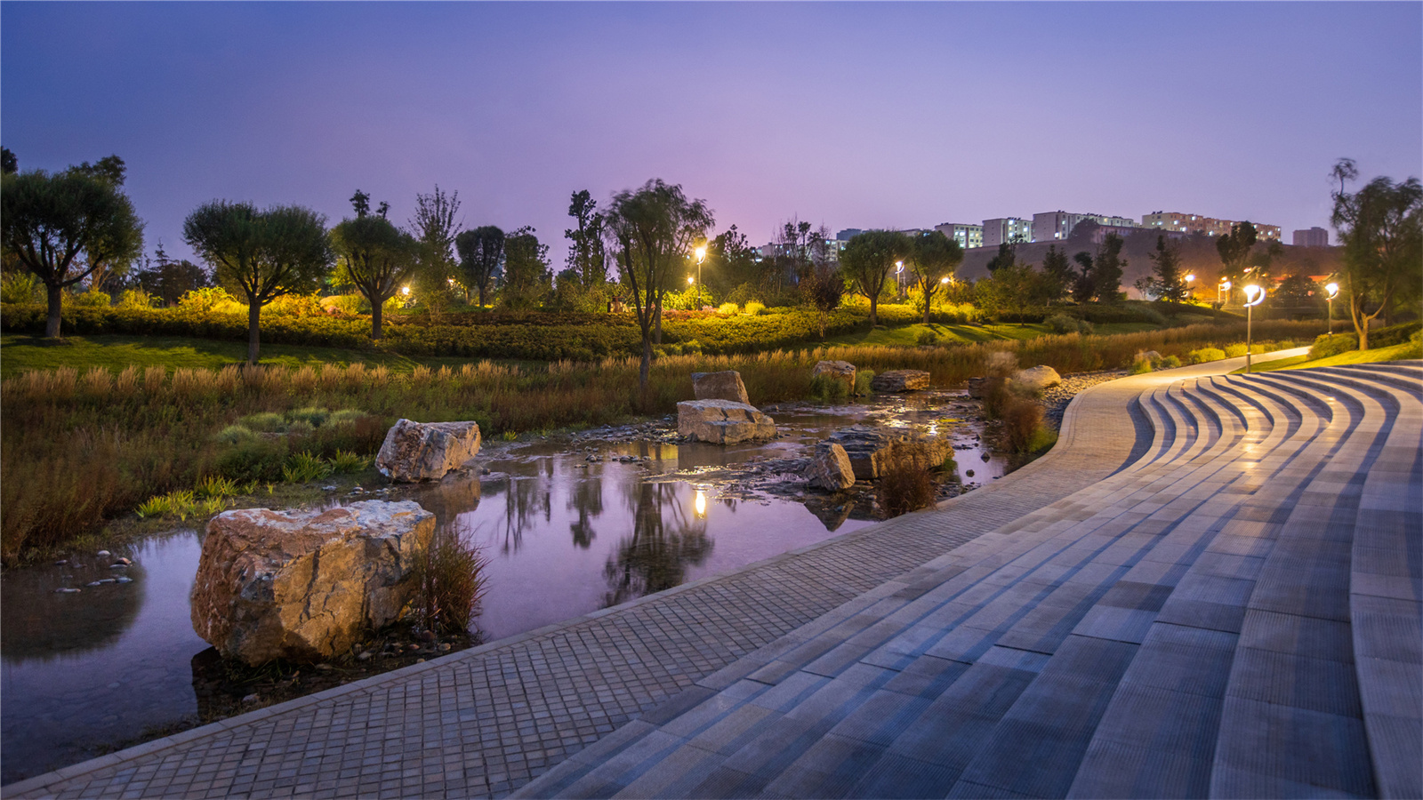 城市“溪道”不是單一目標(biāo)的工程措施,它是城與河的有機(jī)連接,也是融入城市生活的美好景觀,帶給人們優(yōu)美的溪流、濕地等水景觀,促進(jìn)人們與水的親密接觸。