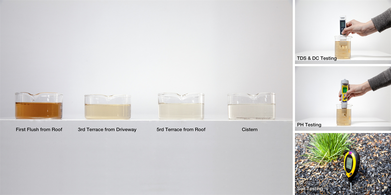 雨水花園建成后,分別收取不同位置的雨水,包括棄流緩沖池、景觀水槽、下沉花園和蓄水池,結(jié)合當日降雨量及雨型進行長期記錄和綜合分析,以觀察雨水花園的凈化滲透表現(xiàn)。雖然是低維護花園,也需要定期對植物和雨水系統(tǒng)進行維護,以有效長久地發(fā)揮其凈化、收集作用。結(jié)合景觀臺地蓄水經(jīng)驗、有機新材料及低維護植物的運用與更新,形成雨水路徑、臺地、植物、節(jié)能型材料和色彩5大特征相結(jié)合的雨水花園微創(chuàng)新。