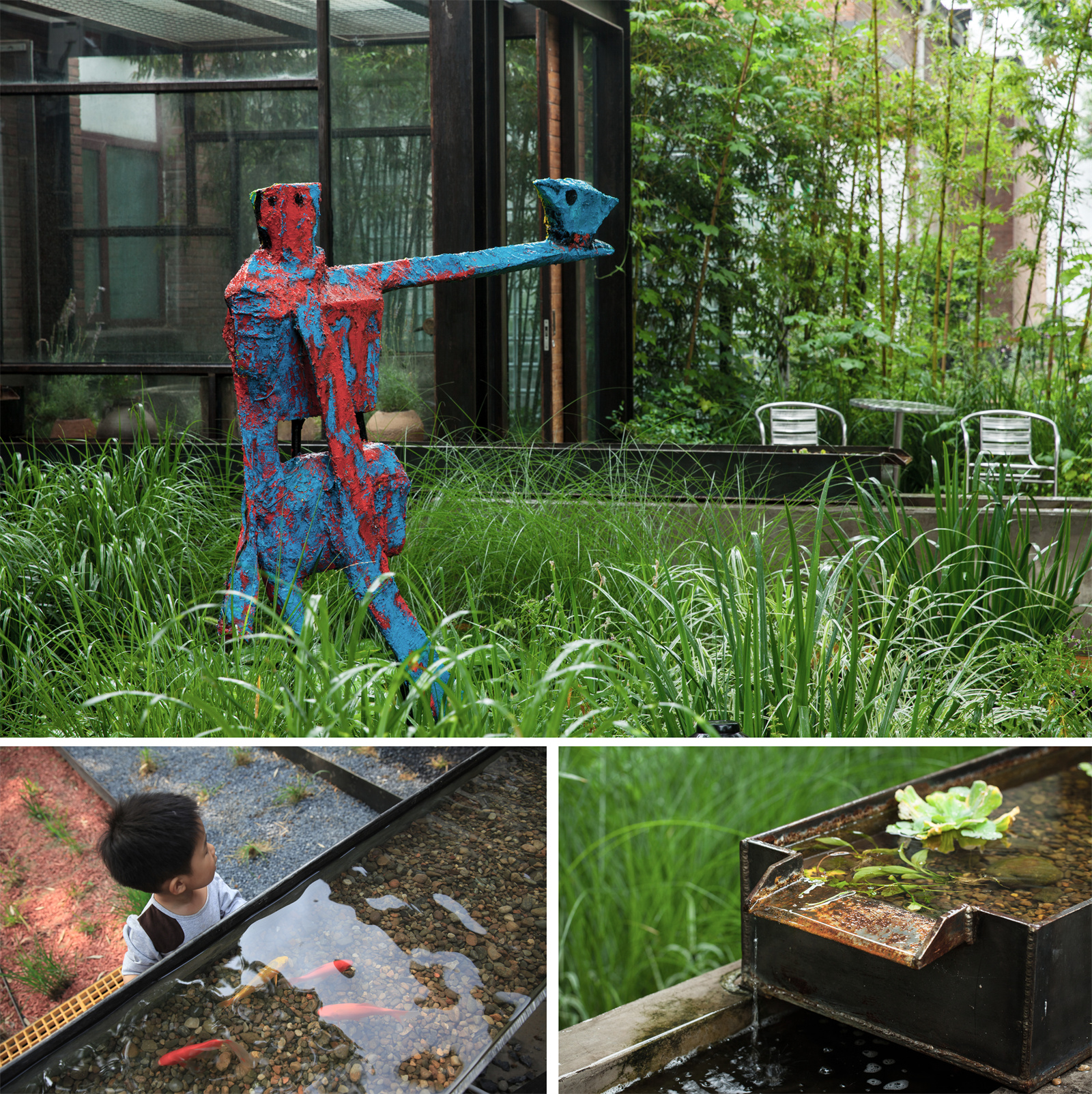 設計師將其作為一個“試驗基地”,每年嘗試新種植品類,觀測記錄不同植物在其間的生長狀態(tài),從學術研究到大眾園藝喜好,不斷發(fā)掘和推廣適宜雨水花園生境的植物材料;花園里佇立的藝術雕塑,是北京交通大學的老師利用廢舊衣料再創(chuàng)作的作品,呼應“可持續(xù)”設計主旨;此外,花園作為多所高等院校風景園林、環(huán)境藝術等專業(yè)的教學實踐場域,迎來一屆又一屆師生的參訪、調(diào)研和現(xiàn)場體驗。