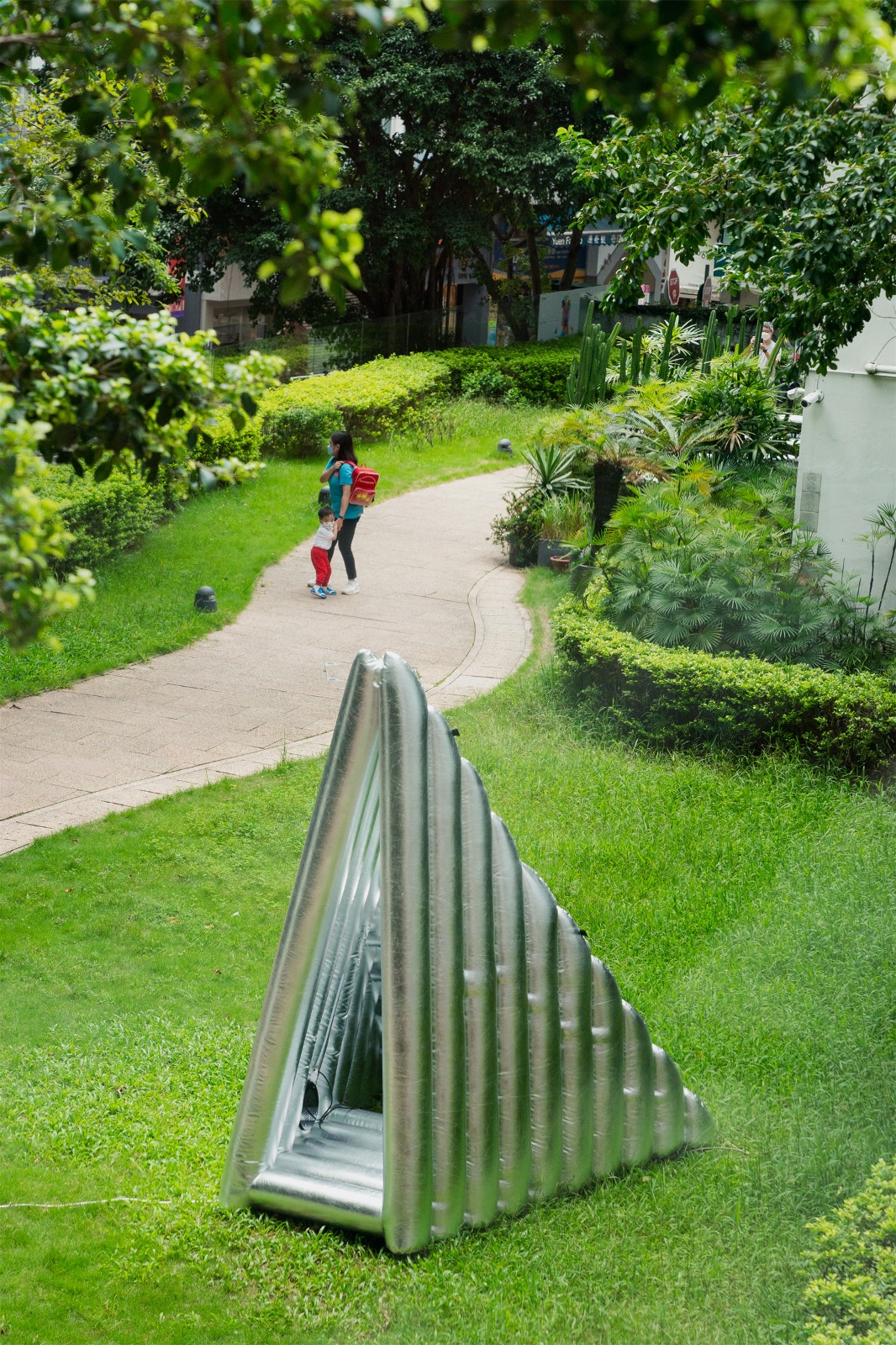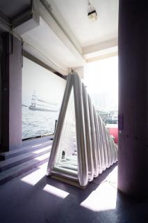 沿著情境主義藝術(shù)運(yùn)動(dòng)中那些俏皮的思想,探索超越日常情境下的背景和環(huán)境。充氣教堂是一個(gè)便攜、可重復(fù)使用,且個(gè)人和自發(fā)的精神空間。它通過以充氣形式操縱光線形成一個(gè)迷你的私人教堂。
