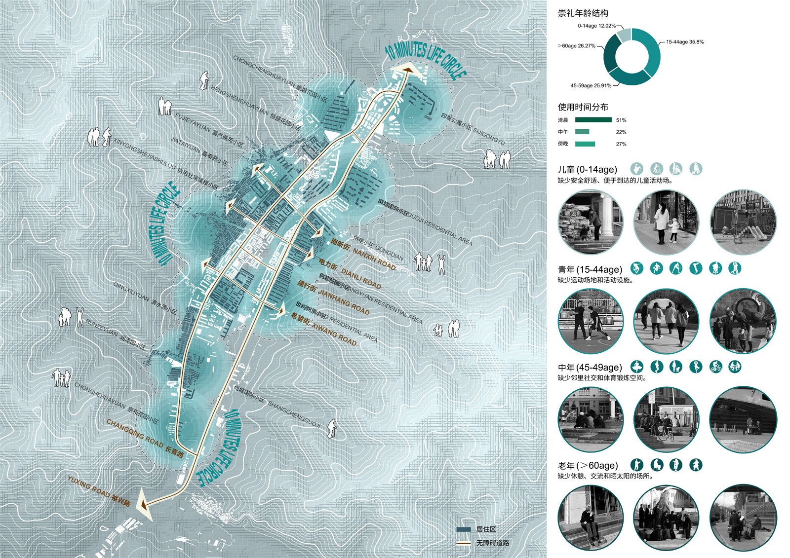 崇禮居民缺乏活動(dòng)場(chǎng)地和娛樂設(shè)施,該項(xiàng)目在10分鐘的生活圈內(nèi)提供聚集空間,打造14.8公里的無障礙道路,服務(wù)于所有年齡段和所有群體,確保人人共享城市。為社區(qū)創(chuàng)造便于到達(dá)的運(yùn)動(dòng)場(chǎng)、公園、廣場(chǎng)、兒童游樂場(chǎng)等社交空間,成為附近居民戶外生活的目的地,為城市帶來活力。為老人提供便捷生活的條件,為兒童創(chuàng)造了更多與自然接觸的機(jī)會(huì)。