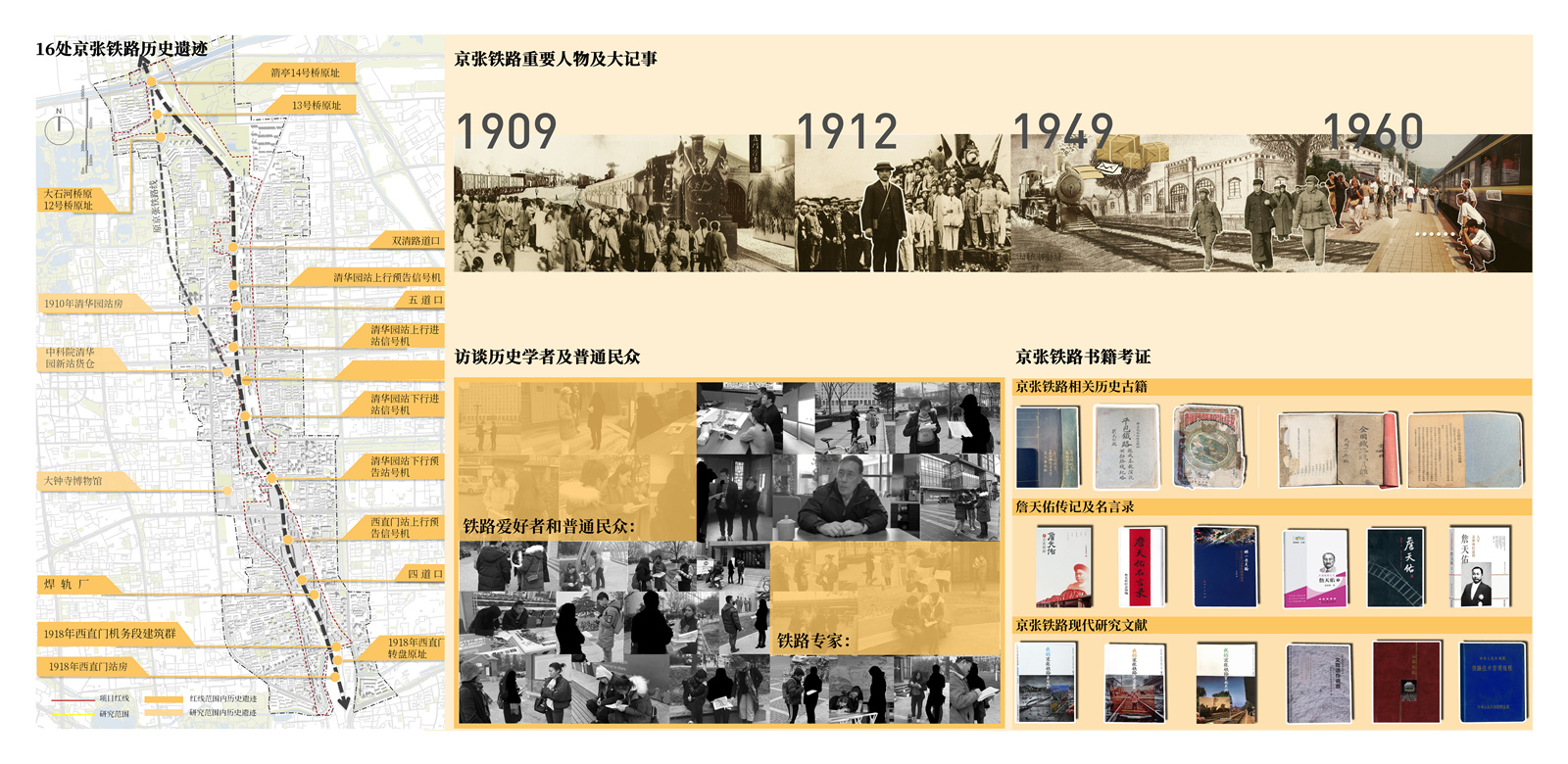 通過與鐵路專家的大量訪談,掌握一手京張鐵路相關資料和史籍。針對京張鐵路遺址提出靜態(tài)保護、文化演繹、活化體驗三大設計策略,旨在于復興京張大歷史,重現(xiàn)京張遺址價值,傳承其精神文化內涵。