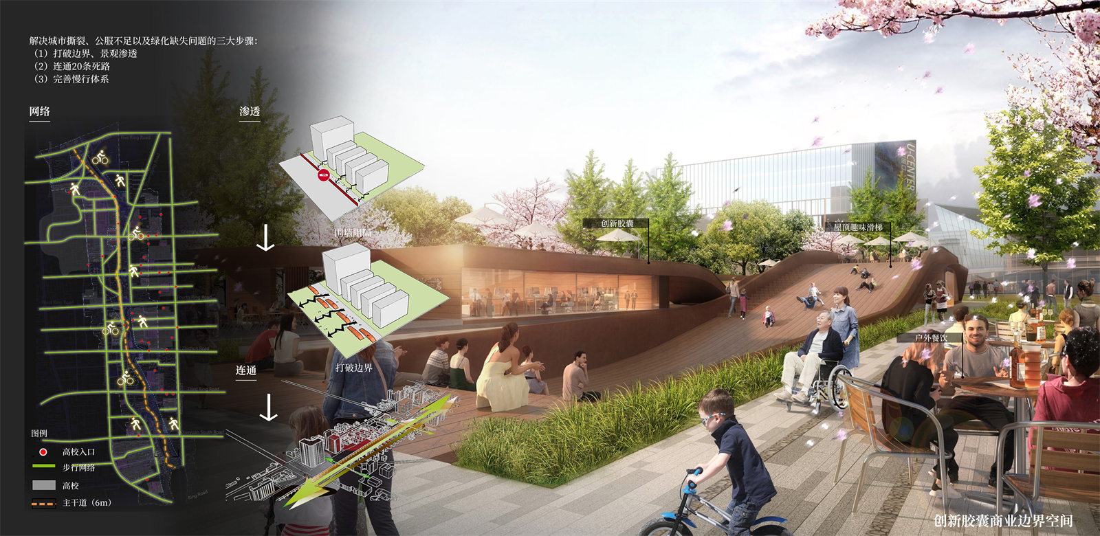 團隊運用500萬份大數(shù)據(jù)資料,對研究范圍內各年齡段、各職業(yè)居民、外國人的分布和特點,科創(chuàng)企業(yè)的分布和特征進行研究。提出創(chuàng)新雨林、科創(chuàng)膠囊、智慧公園三大創(chuàng)意,將未來的科創(chuàng)空間,向傳統(tǒng)行業(yè)、日常生活滲透。