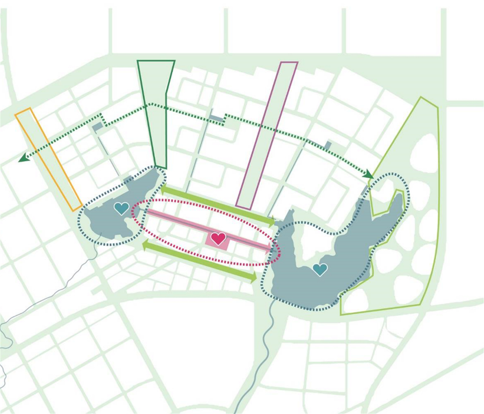 5. 可持續(xù)性發(fā)展的城市公共空間與水系、綠色生態(tài)廊道的深度結(jié)合,將水處理功能與親水休閑娛樂、運(yùn)動(dòng)功能融合,創(chuàng)造獨(dú)特的生態(tài)水景觀,提升新建城區(qū)居民生活品質(zhì),實(shí)現(xiàn)“生態(tài)融城,與水共生”的美好愿景。