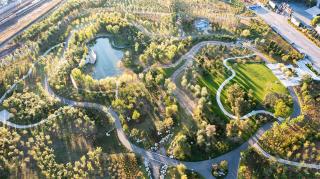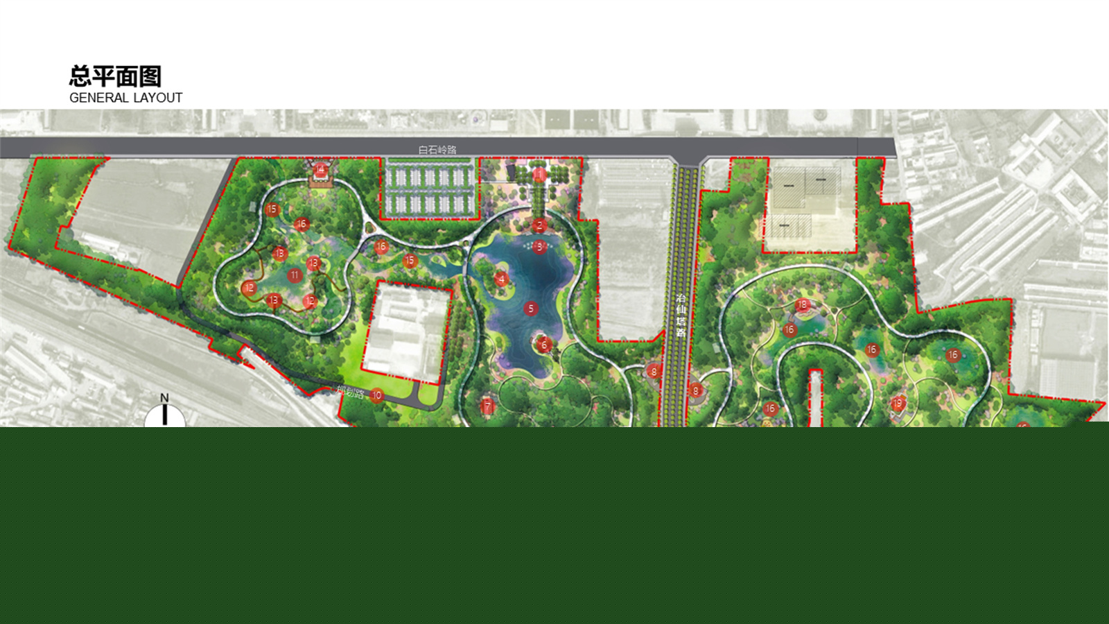 設計首先梳理了功能組團,由貫穿全園的水體為依托,形成臨水型和游覽型游徑為一體的主園路,供游人欣賞山水風光。在為游客提供休閑娛樂去處的同時,公園也同樣服務于周邊居民,實現(xiàn)了功能上的填補。