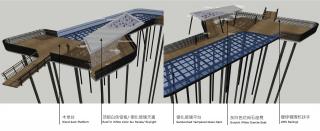 天空棧道置于山頂之處,宛如一個(gè)精致的皇冠戴在山頂,將人行的動(dòng)線抬升,剝離山地的地面,既能保護(hù) 山頂區(qū)域的自然植被與地貌,減少人的行為對于自然表皮的干擾與破壞,也能提供更加開闊舒展的步行體驗(yàn),在深圳這樣一個(gè)高節(jié)奏高密度的城市生活空間中感受云中漫步的浪漫與悠閑。