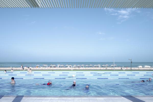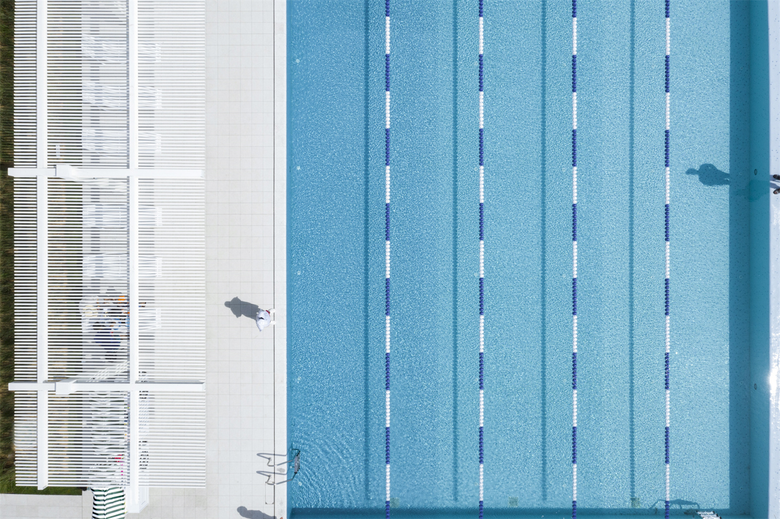 項(xiàng)目場(chǎng)地位于阿那亞海灘邊的ClubMed地中海酒店南側(cè),在炎炎夏日里,泳池成為了海邊難得的水上游樂空間。