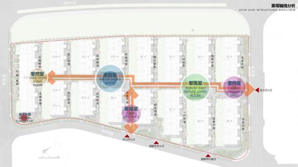 水鄉(xiāng)孕育的文化,與設(shè)計(jì)上和風(fēng)水上的美好寓意,結(jié)合在一起,通過序列的統(tǒng)一的方式,進(jìn)一步強(qiáng)化軸線,引導(dǎo)歸家主動線的方向。
