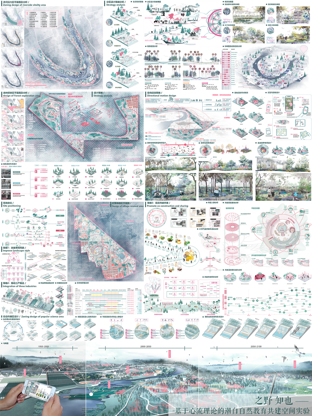 該作品為《之野知也——基于心流理論的潮白自然教育共建空間實(shí)驗(yàn)》。本設(shè)計(jì)以不同人群心流的視角出發(fā),依據(jù)心流理論的內(nèi)涵及產(chǎn)生心流的7個(gè)環(huán)境要素,對(duì)場(chǎng)地進(jìn)行景觀規(guī)劃。在此基礎(chǔ)上提出“共建、漸進(jìn)”的運(yùn)行機(jī)制,打造一個(gè)使人們?cè)谧匀恢羞_(dá)成心流體驗(yàn)的自然教育園。