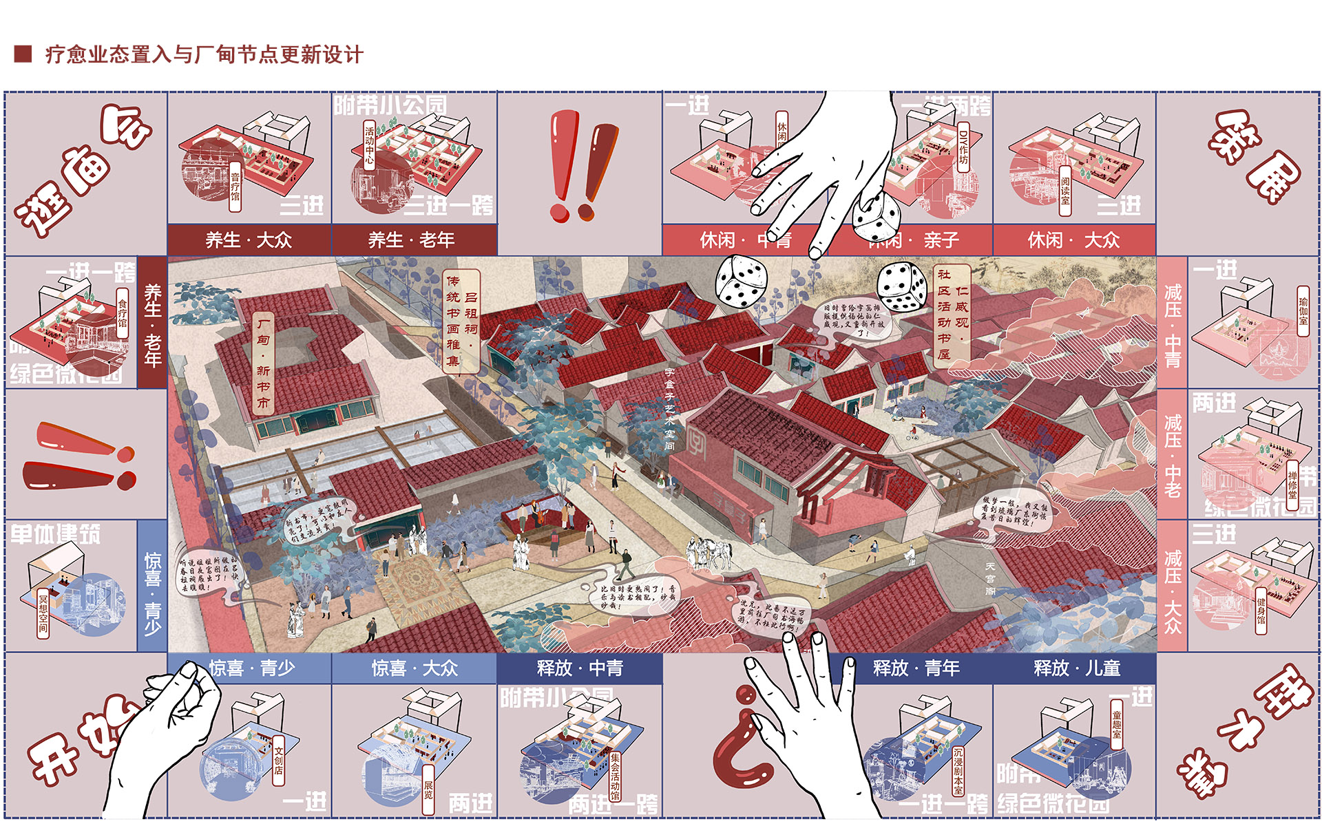在系統(tǒng)更新規(guī)劃中,則以點(diǎn)針灸、線輸液和全調(diào)養(yǎng)的手法,對(duì)于不同分值的寺廟,不同的街巷空間與片區(qū)分類實(shí)行實(shí)體空間的更新。