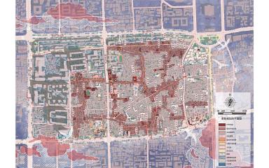 又將分值與老城區(qū)老人步行3分鐘舒適距離100米相乘,計(jì)算寺廟的空間影響力,以此為標(biāo)準(zhǔn)指導(dǎo)后期的小紅線劃定與整體規(guī)劃。