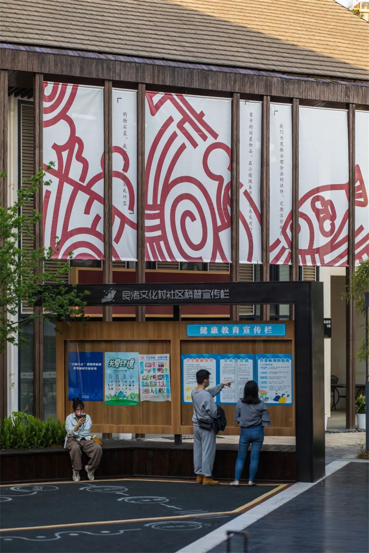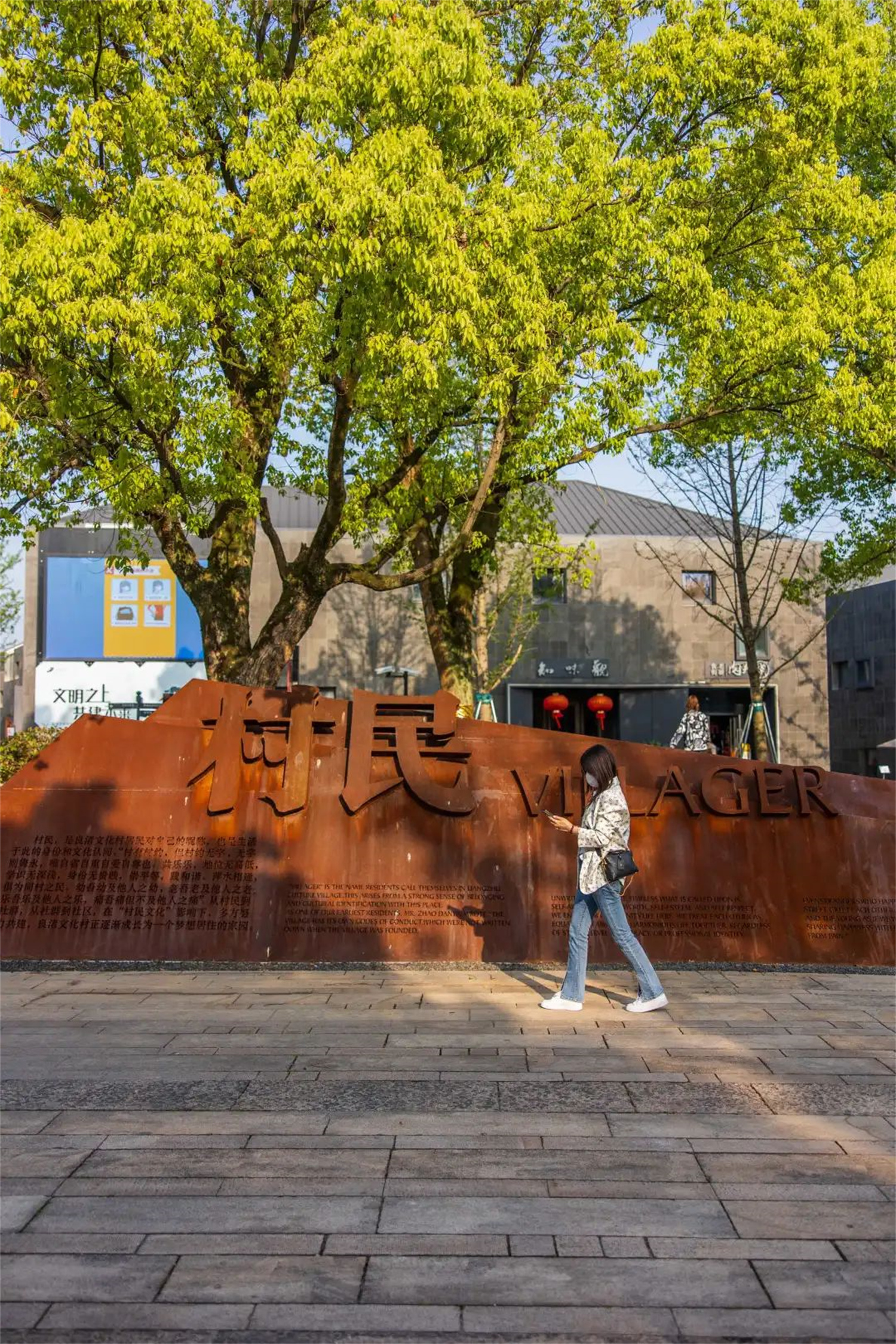 去年是建黨100周年,而良渚文化村一直以來都是一個(gè)村民共治的社區(qū)。因此,我們提出了良渚百人寄語的方案,把村民的語錄做成文化磚嵌入地磚里。隨著玉鳥流蘇二期商業(yè)的不斷發(fā)展,文化磚將一直延續(xù)下去,讓“微更新”成為加強(qiáng)村民情感、增進(jìn)鄰里交往的紐帶,形成共建、共治、共享的良性機(jī)制。