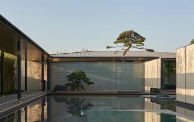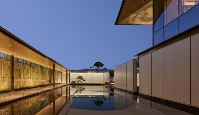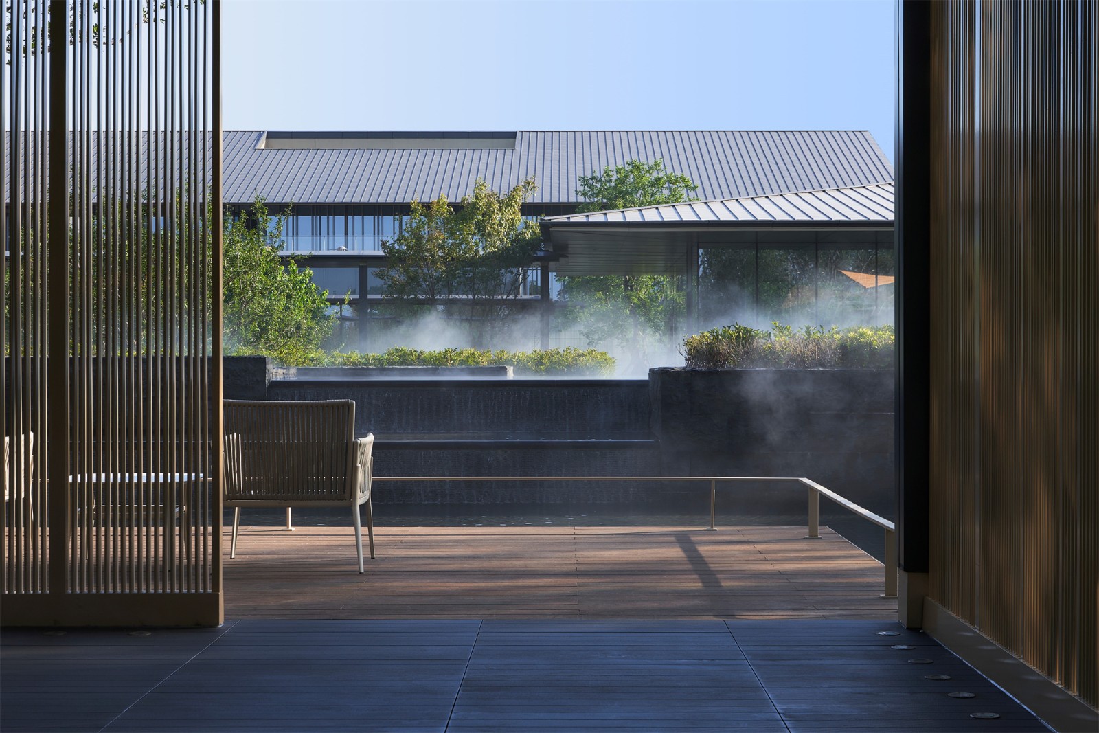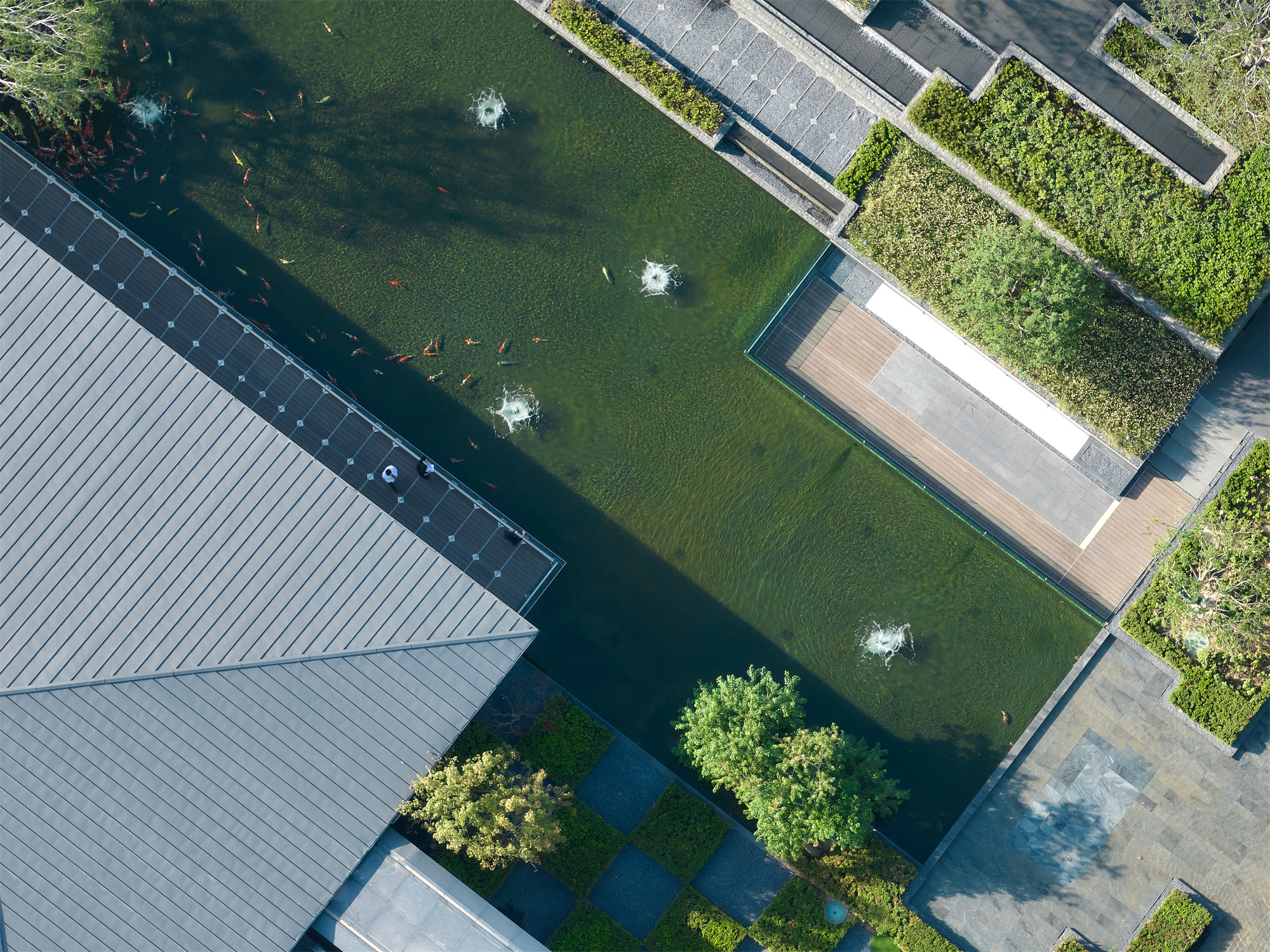 煙波水苑是整個(gè)松生活館的核心,鏈接幾個(gè)不同功能形態(tài)的建筑以及庭院,所以在錯(cuò)落的建筑中它體現(xiàn)了格調(diào)下的松弛感,于婉約的空靈中找尋歸心的寧?kù)o。