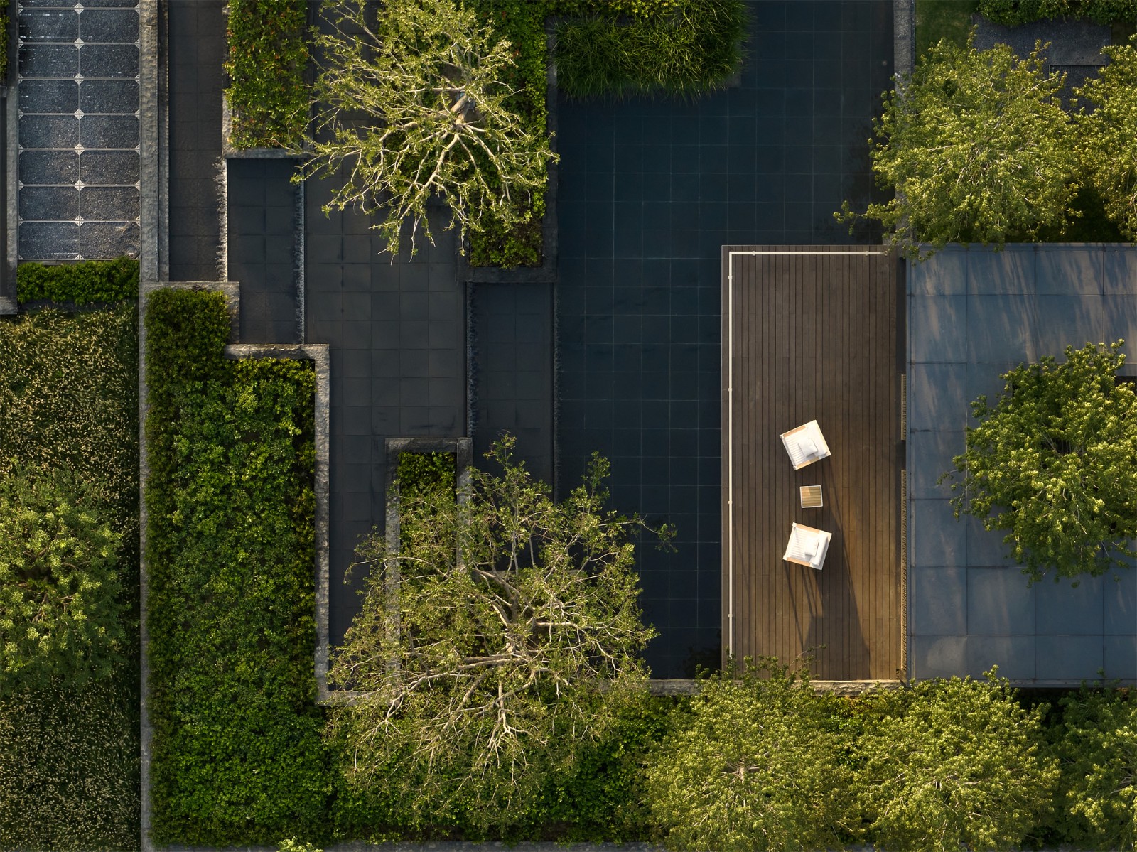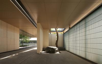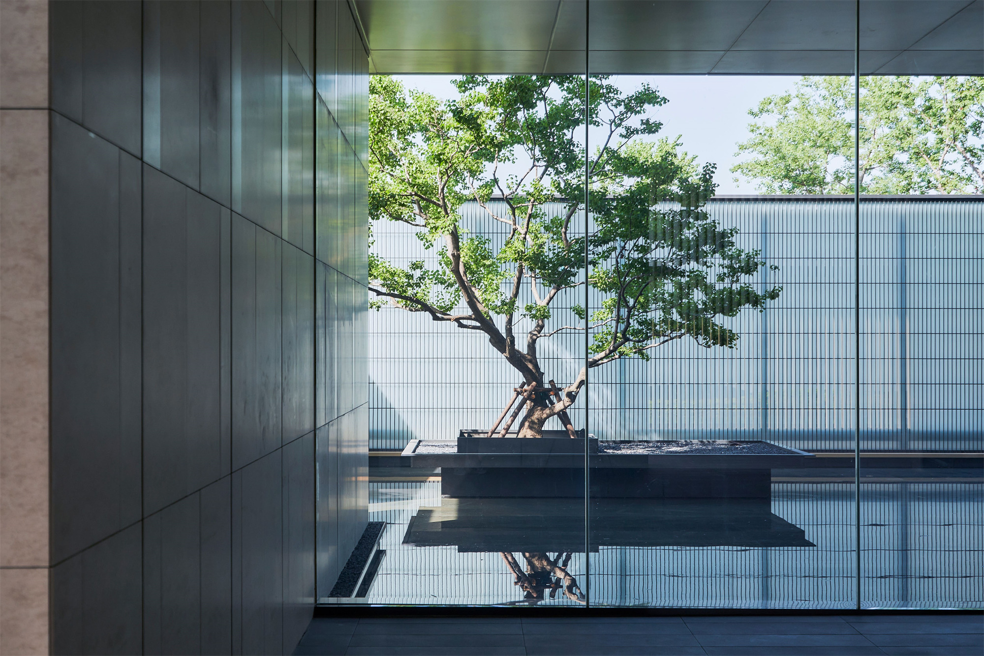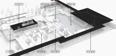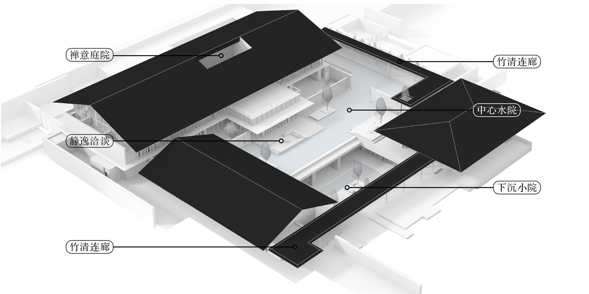 圍繞水苑的是幾個(gè)不同功能與尺度的下沉庭院,其作為室內(nèi)功能的延續(xù),從功能與視線尋找內(nèi)外關(guān)聯(lián)性。