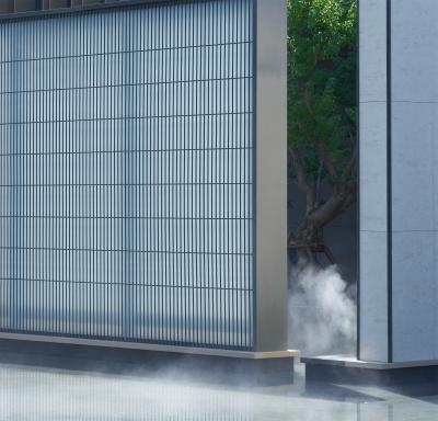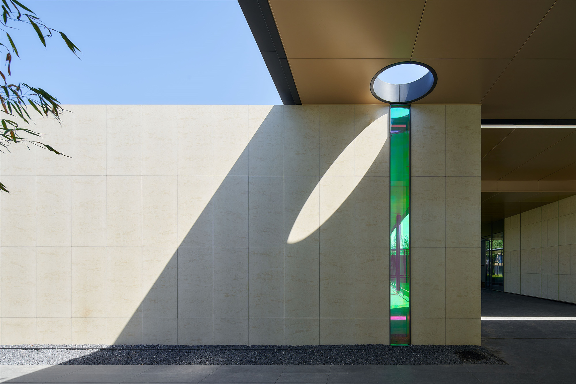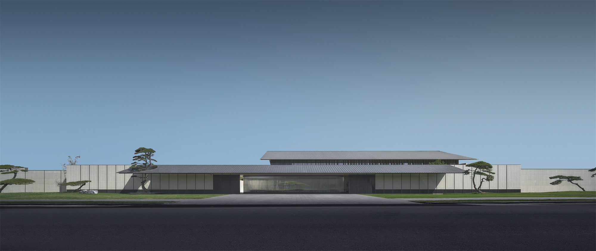 門頭,是對(duì)外的窗口,總是能表達(dá)出分明的界限感。玫瑰園的門是300米長(zhǎng)的城市邊界,一反傳統(tǒng)門頭教條化的尺度,以松形為引,于錯(cuò)落間取其形意,仿若深遠(yuǎn)寫意的群松畫卷。以黃百墻為畫布,松與影的虛實(shí)交融間,是惹人注目的無(wú)窮探索欲。