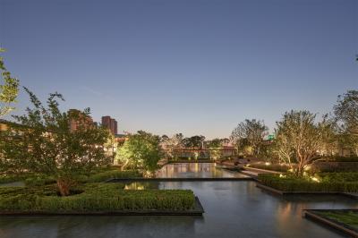 游園的南面,通過(guò)現(xiàn)代意向化的小橋流水,營(yíng)造進(jìn)入游園的空間導(dǎo)向。周圍植物于自然中塑造簡(jiǎn)約的層次感,游動(dòng)的錦鯉、舒緩的流水、朦朧的霧森……無(wú)不凸顯現(xiàn)代山水游園的寫意風(fēng)骨。