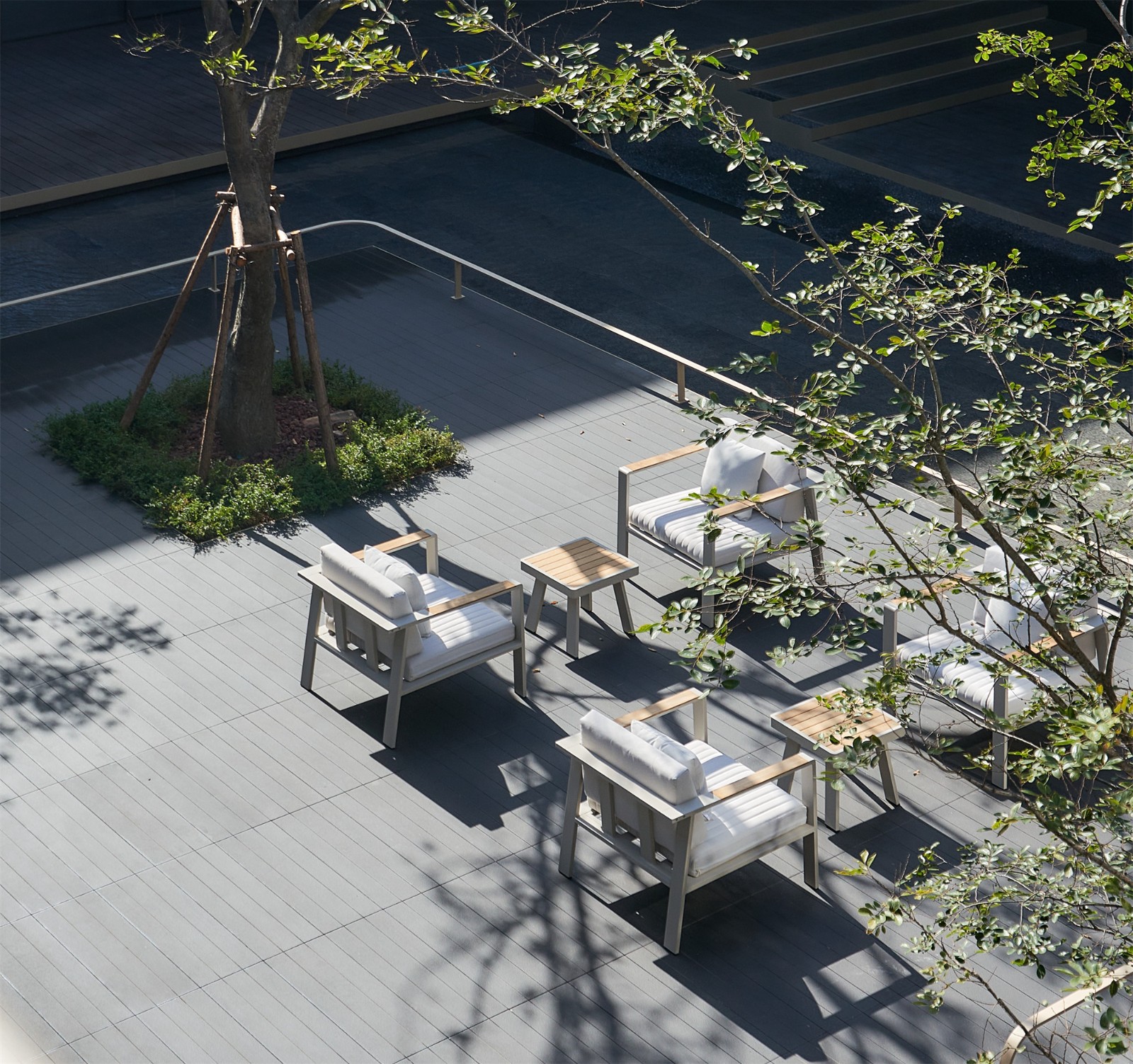 有別于傳統(tǒng)的中央會(huì)客廳,樹(shù)影掩映下的雅筑用簡(jiǎn)約的材料流露婉約的質(zhì)感,這是貫徹里表的優(yōu)雅,亦是項(xiàng)目傳遞的精神準(zhǔn)則:用自然詮釋生活的詩(shī)意。