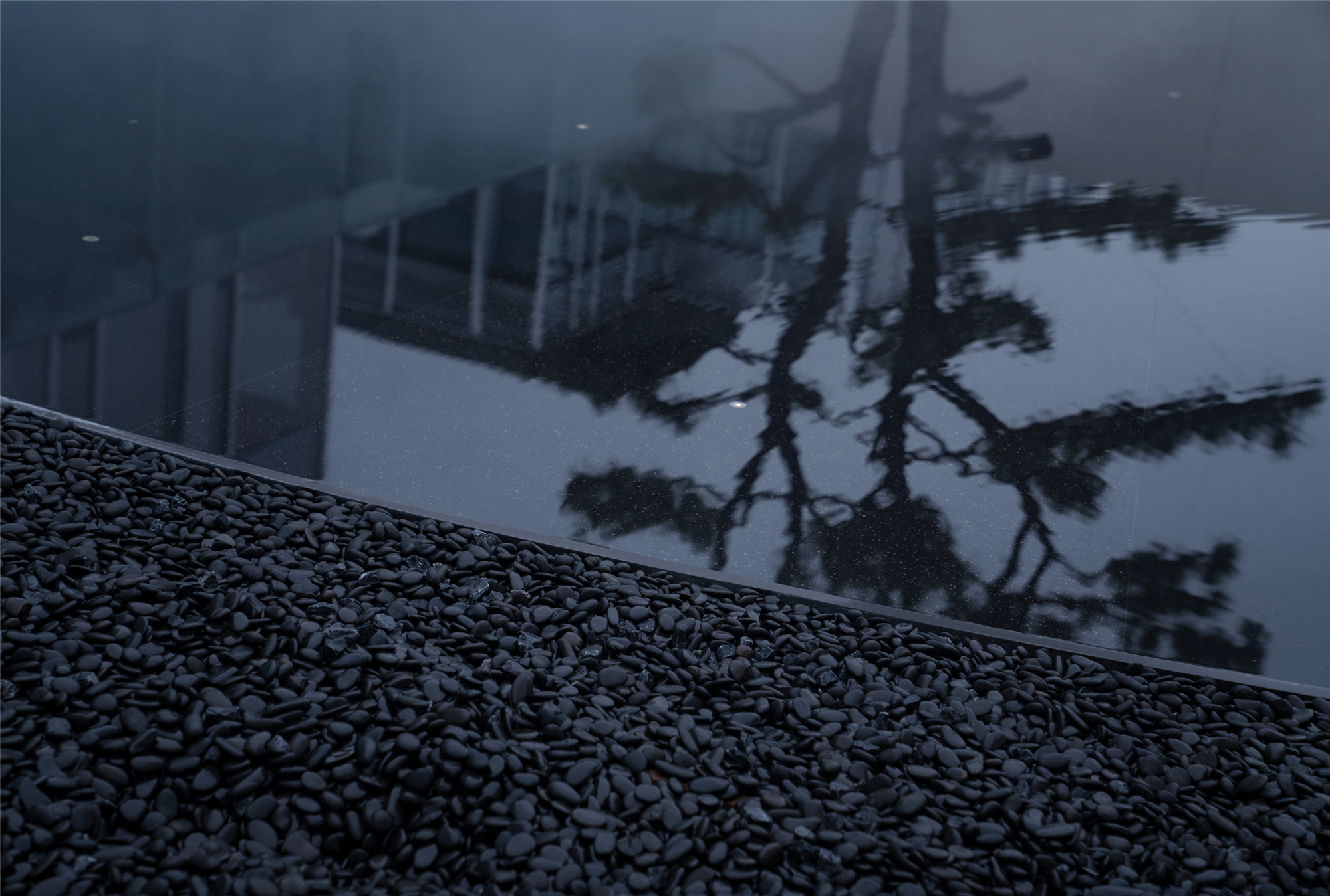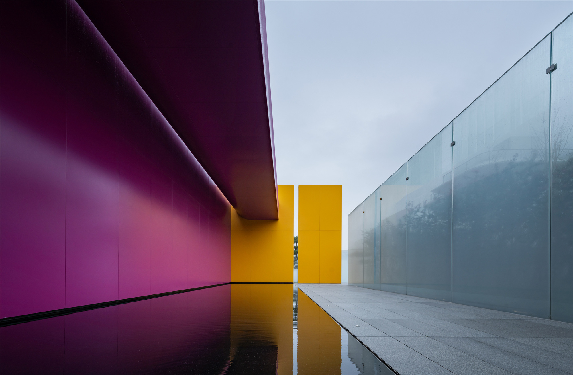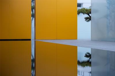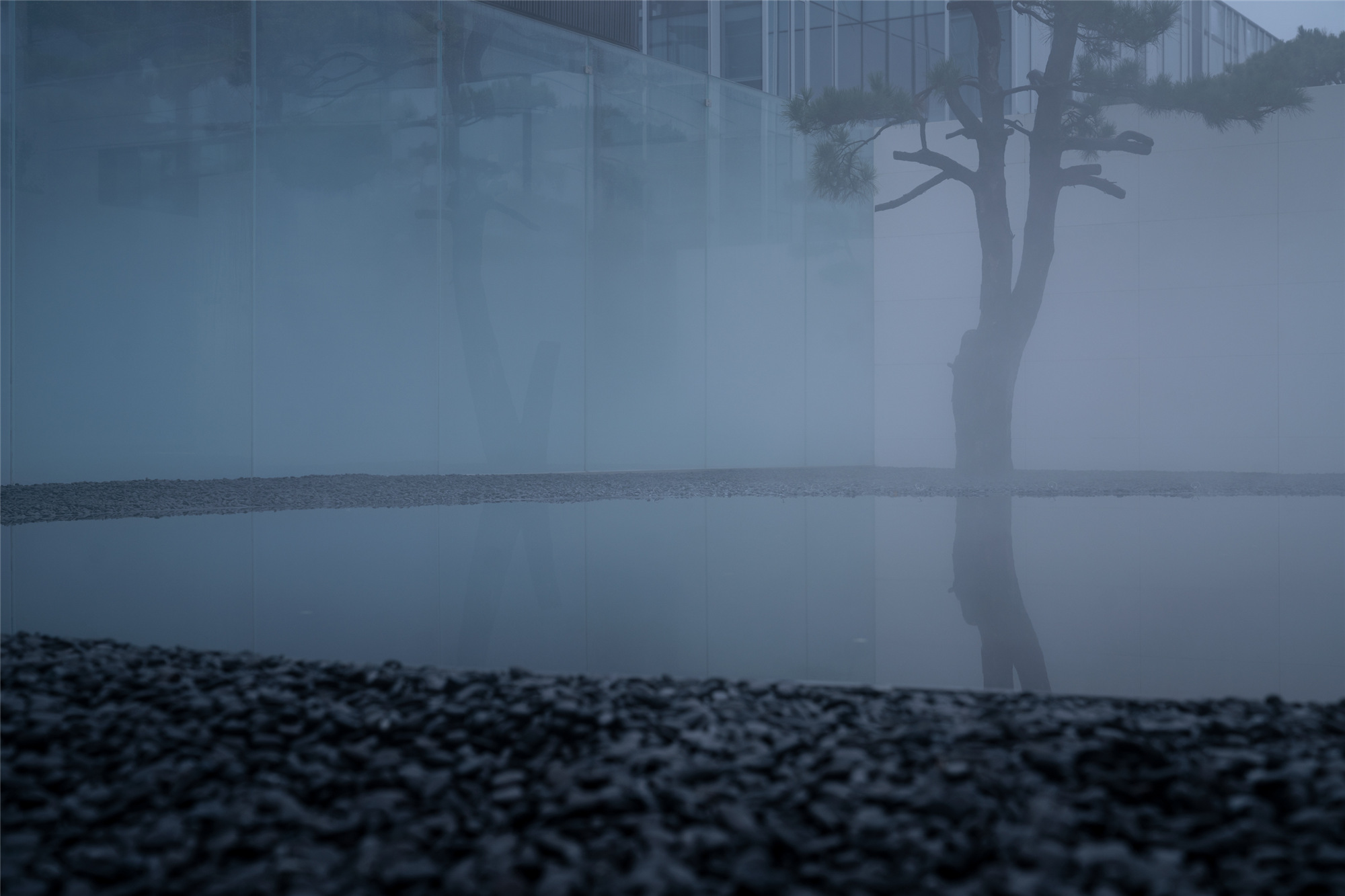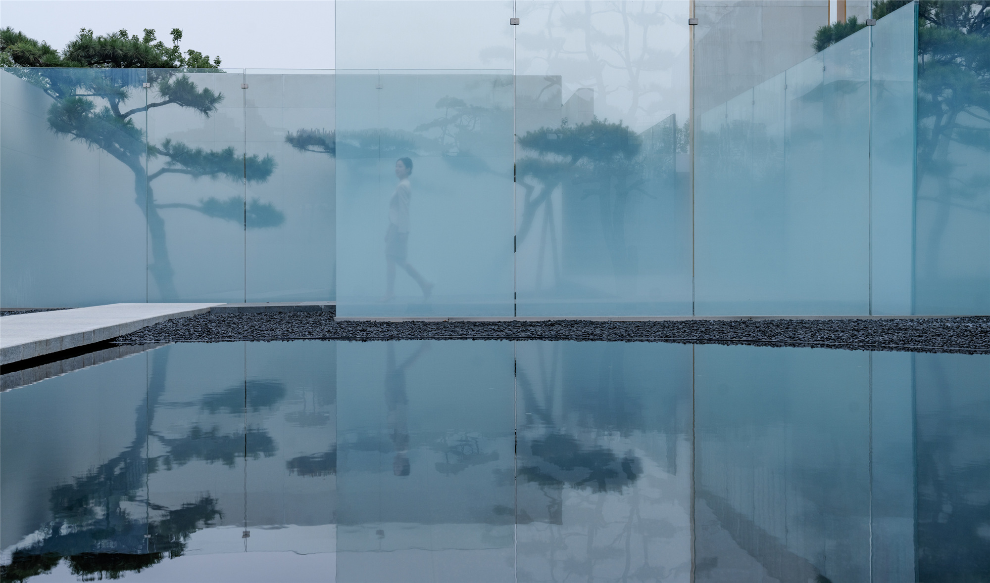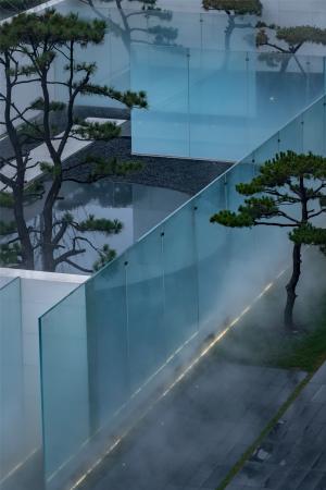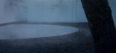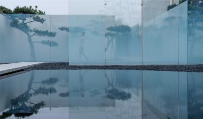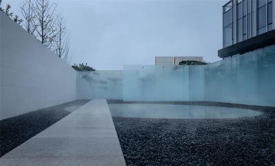 水有著把空間逆轉(zhuǎn)能力的“現(xiàn)象濾鏡”,與玻璃結(jié)合的折射與反射,讓空間層次進一步復雜化,使人的身體感官體驗被糅雜在一起。