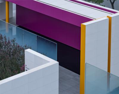 極具戲劇性的彩色水庭,色彩和光影產(chǎn)生了蒙太奇效果。光線通過與墻體的互相作用,產(chǎn)生紛繁的多維錯覺。當人的個體在空間中迷失,就是人融入場域的開始。