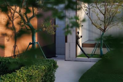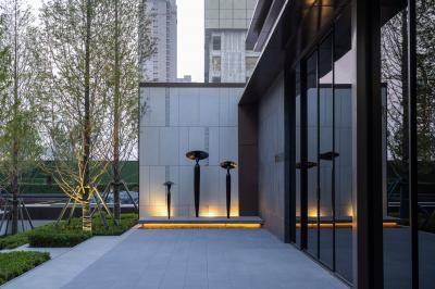 入口回溯山林之形,以山地為界,穿石林而行,啟幕隱逸自然。視覺(jué)焦點(diǎn)特選以和氏璧雕塑尊崇禮遇,迎賓之道,傳承“和璽”系奢居理念,重新定義TOP系產(chǎn)品布局開(kāi)闊之勢(shì)。