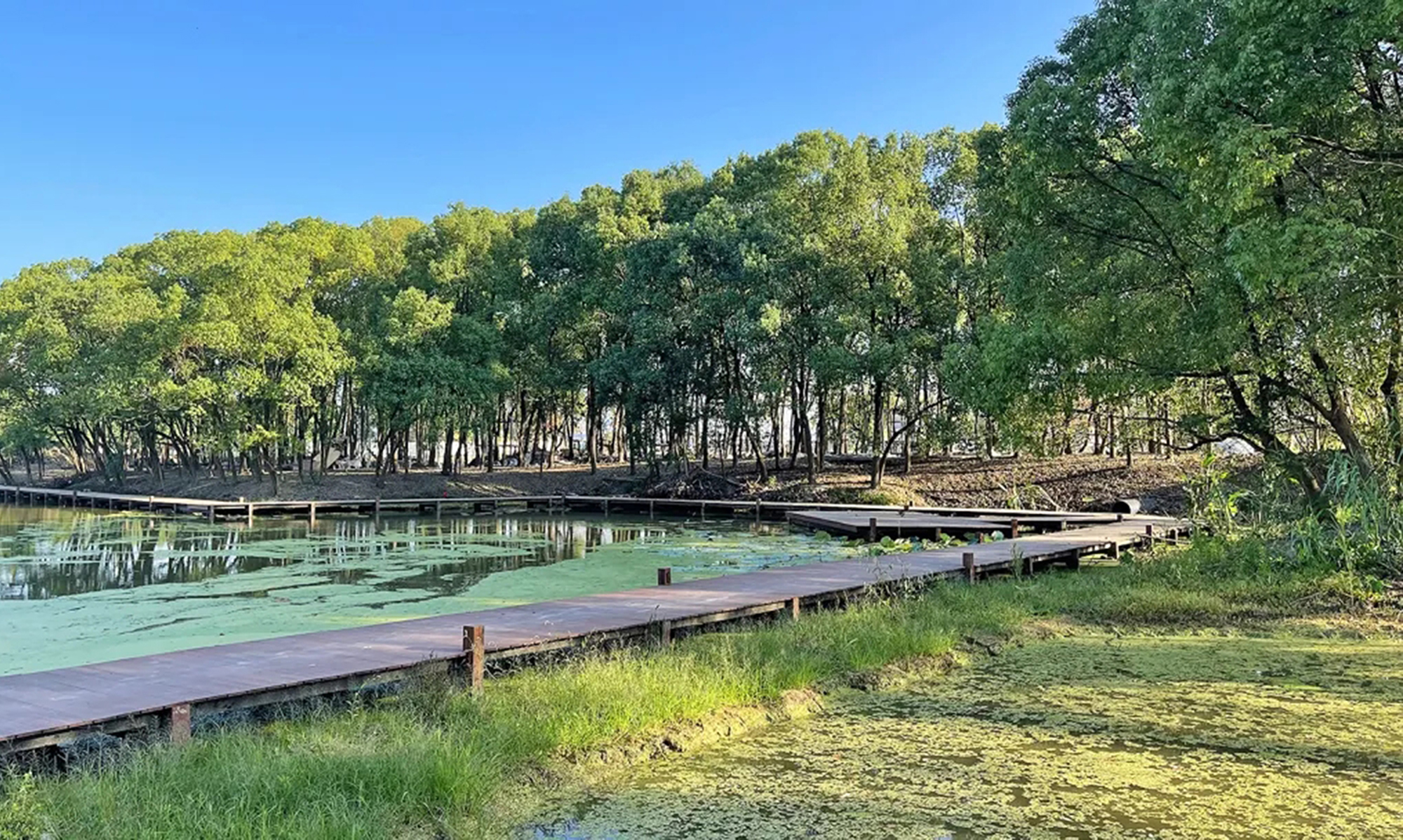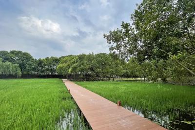 Taoyuan Forest International Tourism Resort is located in the core position of the Yangtze River Delta Integrated Demonstration Zone, the intersection of Shanghai, Suzhou and Hangzhou Golden Tourism Center, and close to the six ancient towns in China - Wuzhen Scenic Area. The overall plan covers an area of about 13 square kilometers, with tens of thousands of mu of water town forest secrets and nearly 100 resort islands in the East China Plain, with a forest coverage rate of about 90%, known as the "Nature's Forest Island Ecological Museum", and only one river away from Wuzhen. The site is naturally flat and lush with vegetation, mostly tall trees.
