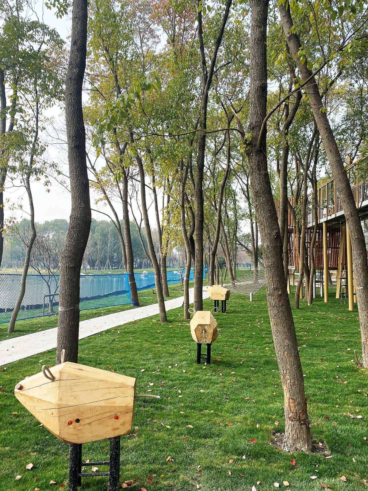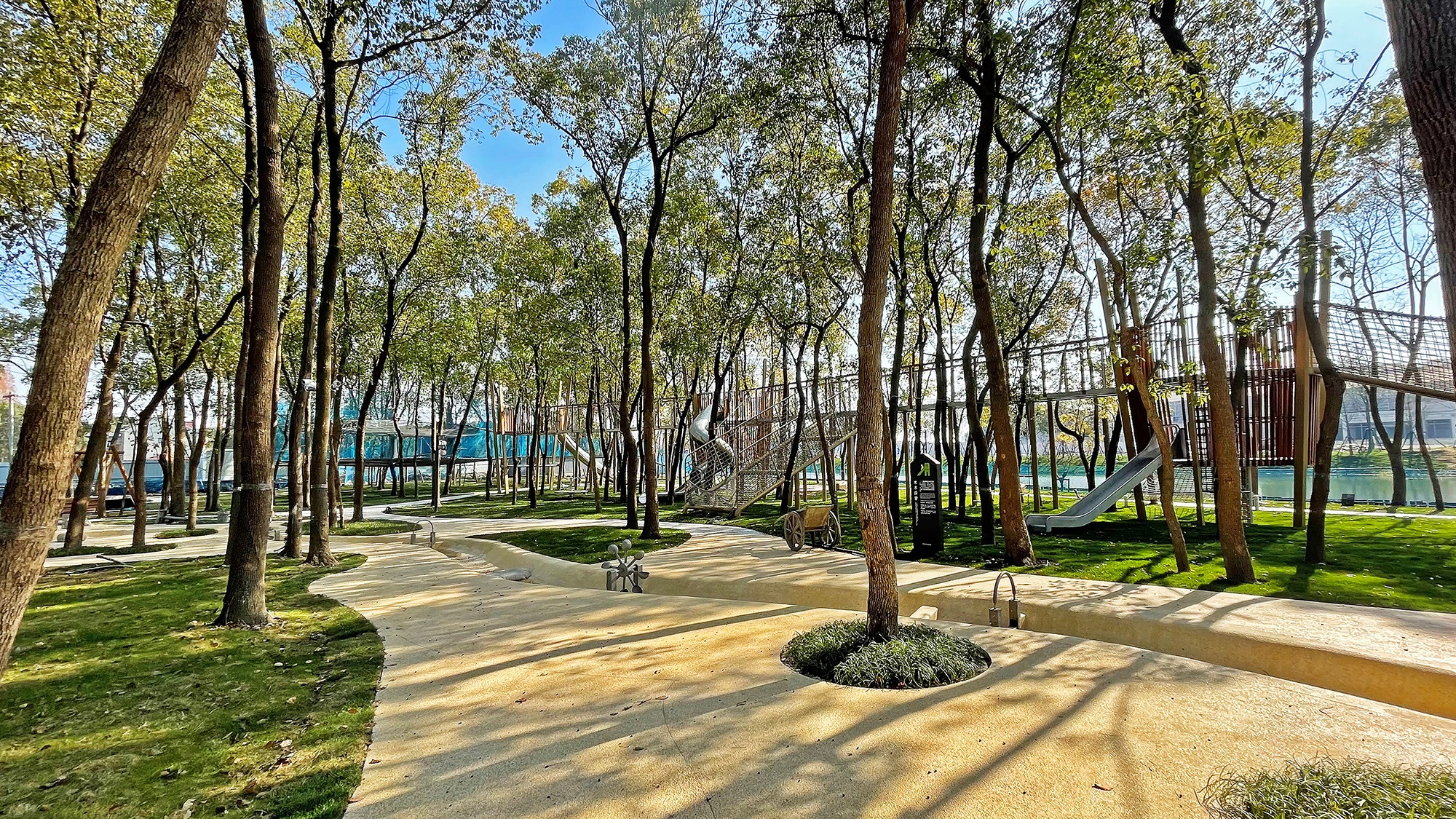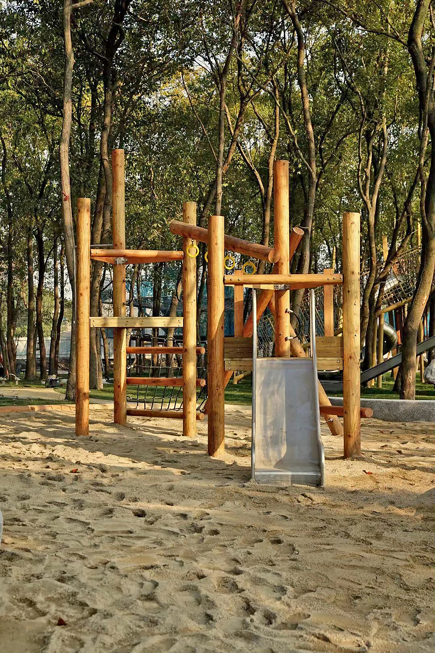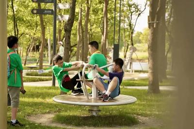 Jiangnan's unique forest water town is the origin of all stories in Taoyuan. In this mysterious forest paradise, there are all the sounds of nature for adults and children - insects and birds, leaves tumbling, streams babbling......At the entrance of Taoyuan Forest, the exploration begins with a variety of log game equipment and nature game bunkers, and the log climbing combination integrates crawling, slide, ring, balance rope and other game functions.