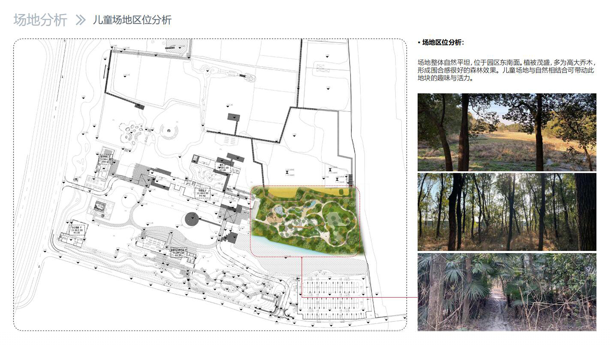 本案以“營造林海中的童趣”為設(shè)計(jì)愿景,以自然探索為核心理念對場景及游樂設(shè)備進(jìn)行設(shè)計(jì)深化及落地。希望讓孩子們在這片樟樹林中,以深刻而基本的方式來認(rèn)識、保護(hù)自然,開啟一場對城市兒童樂園的嶄新探索。