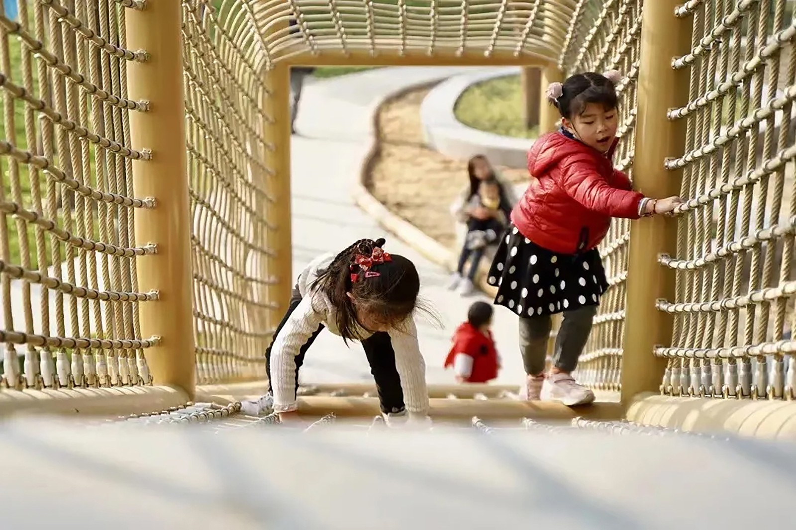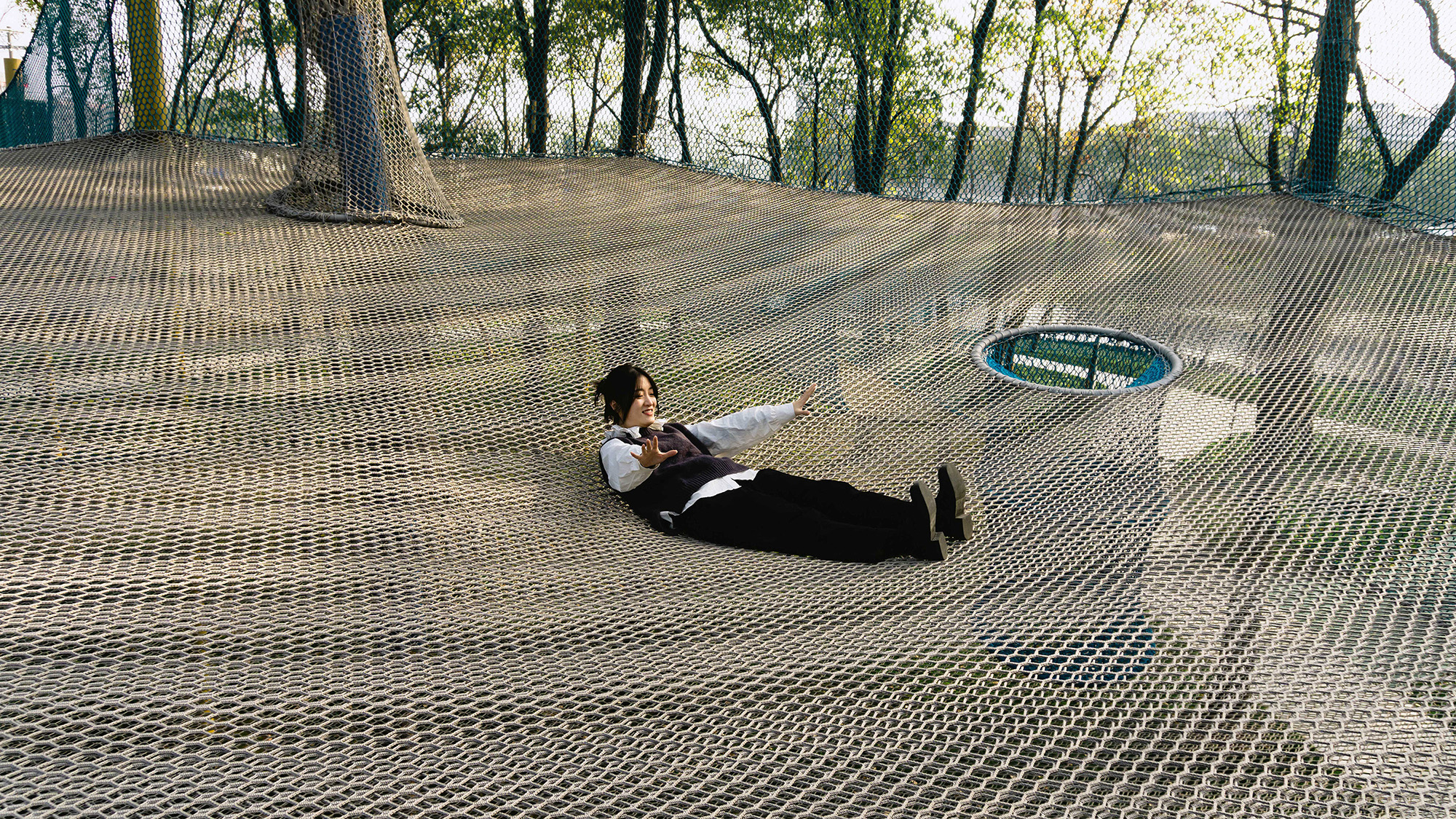 “林網(wǎng)忽隱現(xiàn),孩童展笑顏”—魔幻爬網(wǎng)區(qū)