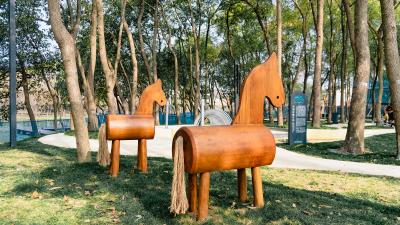 幾只木馬,營造出別致的林間童趣小景,同時(shí)也激活了大人的童年記憶。