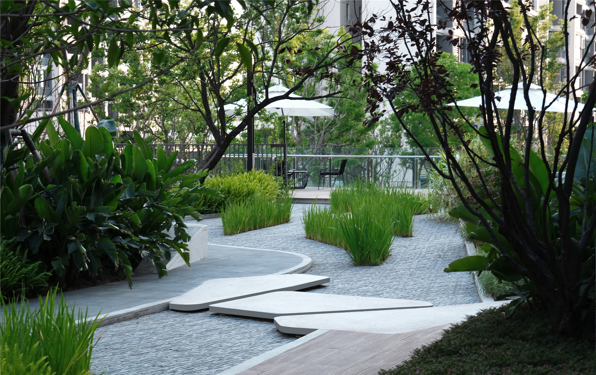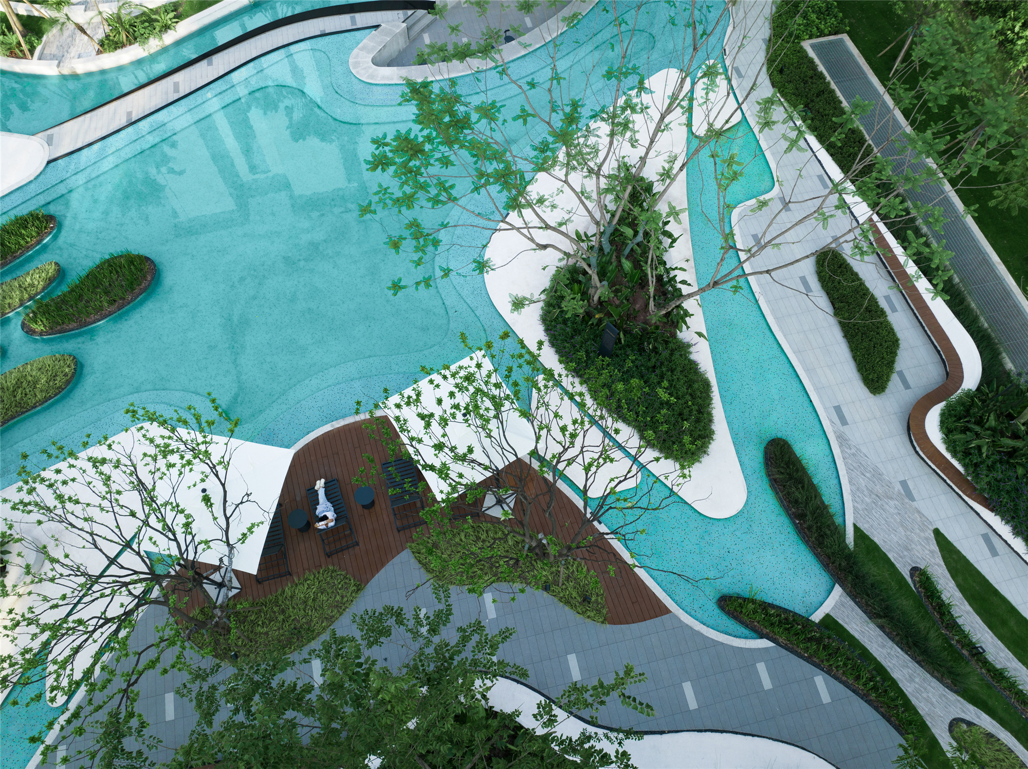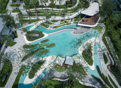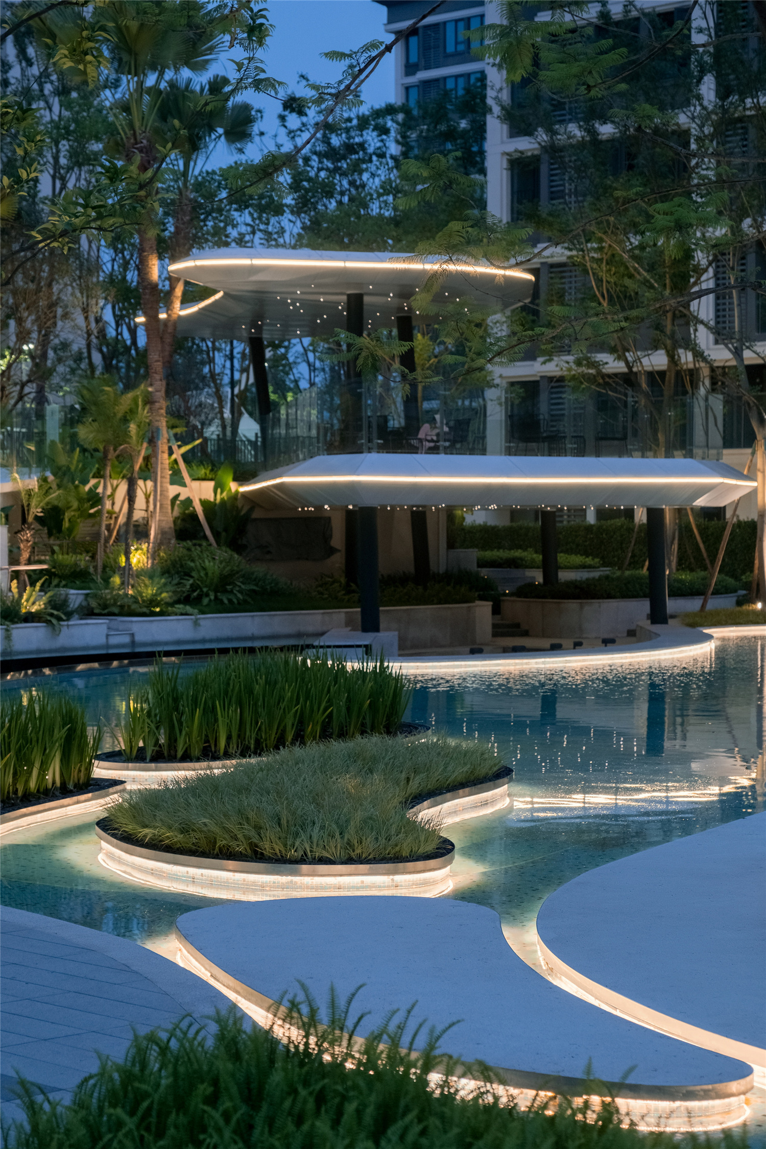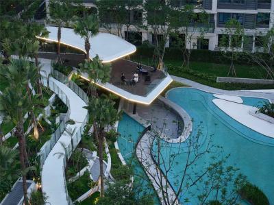 The designed site height difference brings a rich sense of hierarchy to the landscape vertically. The layered terraced plants, while cleverly digesting the height difference, bring a magnificent visual perception of the tropical jungle. They connect different levels of landscape space, providing residents with water-friendly atmosphere, such as watching the water, pressing close to the water, and playing in the water.