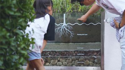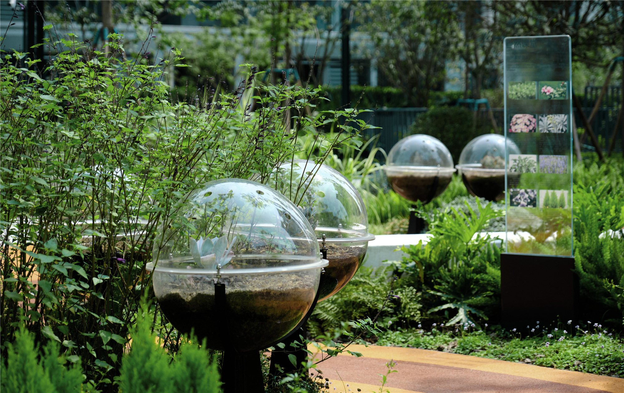 We plant a rich variety of safe plants, equipped with signboards indicating their names, categories and characteristics. We also set up transparent spheres for close observation of the plant growth rhizome, so that children can understand the growth of life and get close to nature through observation and learning.