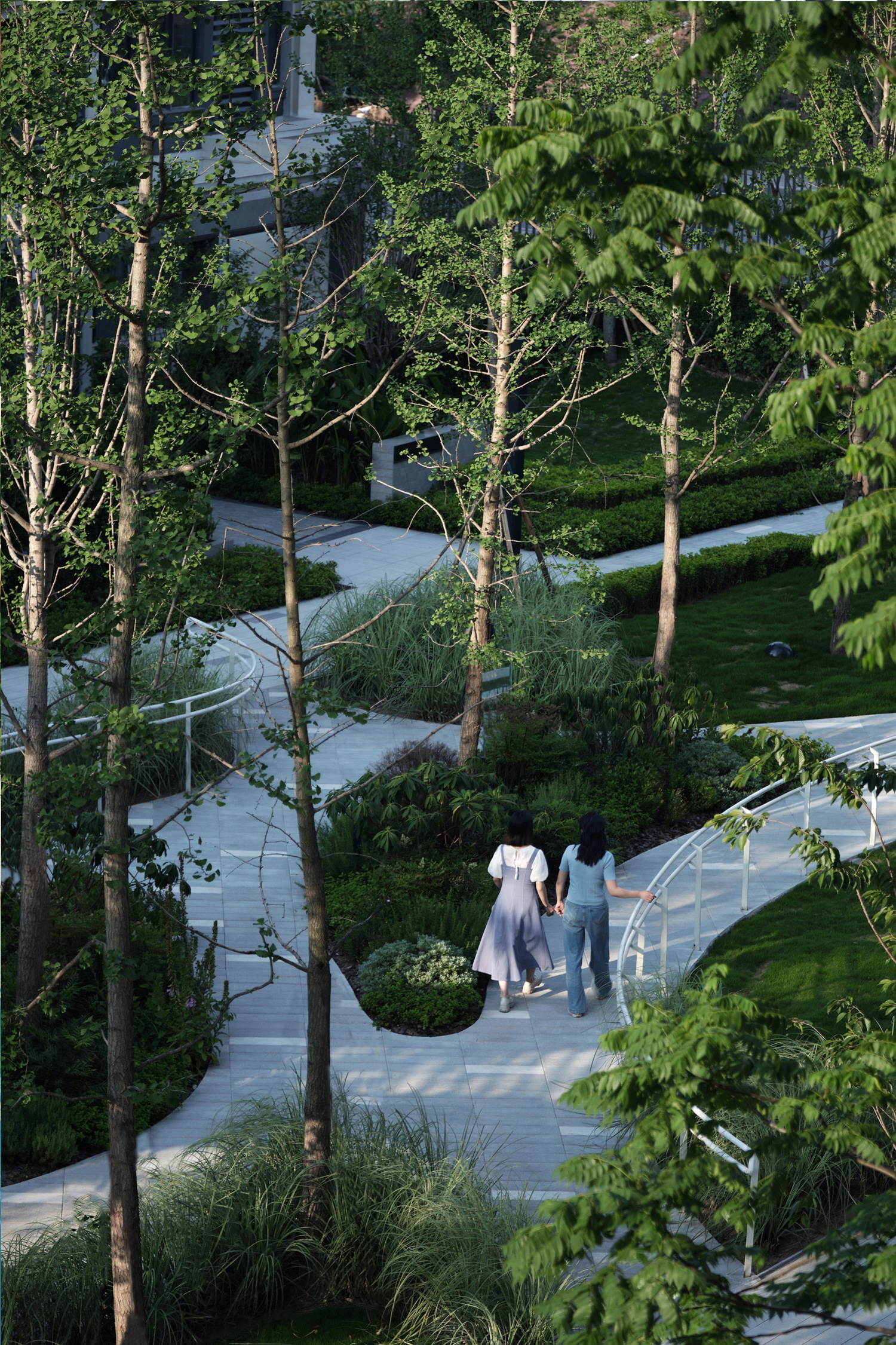 The scattered lines outline a 3D poetry, and a flowing picture. Whether it is walking to the atrium or simply going downstairs, the residents may enjoy a different view in each step. The people who return home from a busy day can't wait to come out to take a seat. They would invite a few friends, or meet their children for a parent-child adventure, or find a secluded site, to immerse the vacation feelings in daily life.