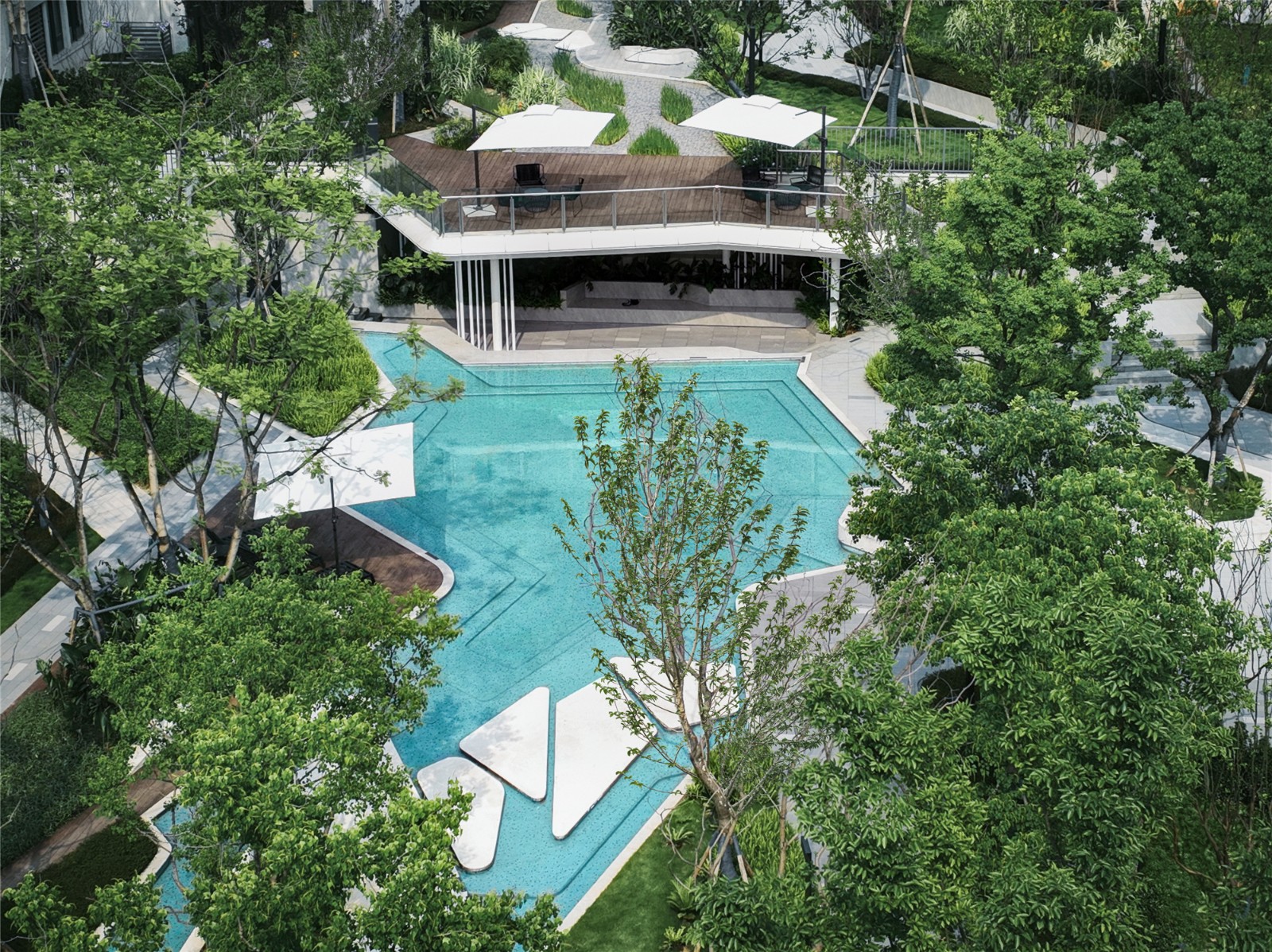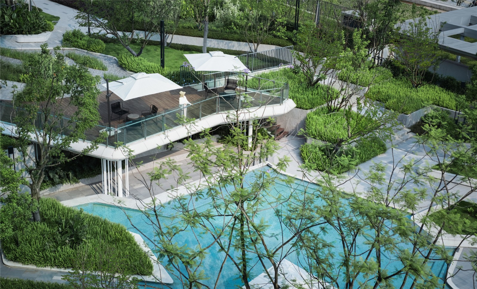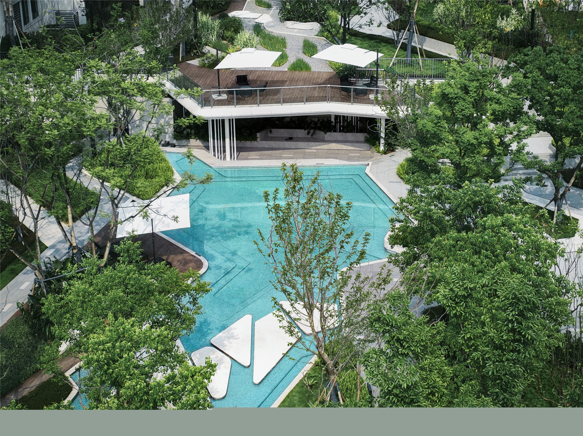 Based on the tone of "vacation community", we draw design inspiration from layer-upon-layer, endless multi-dimensional impression of Chongqing. Infiltrating with "green plants", digesting with "cliff walls", and interweaving with "water bodies", we stack up three-dimensional platform elevations, and visually extend the space indefinitely to form a borderless landscape experience.