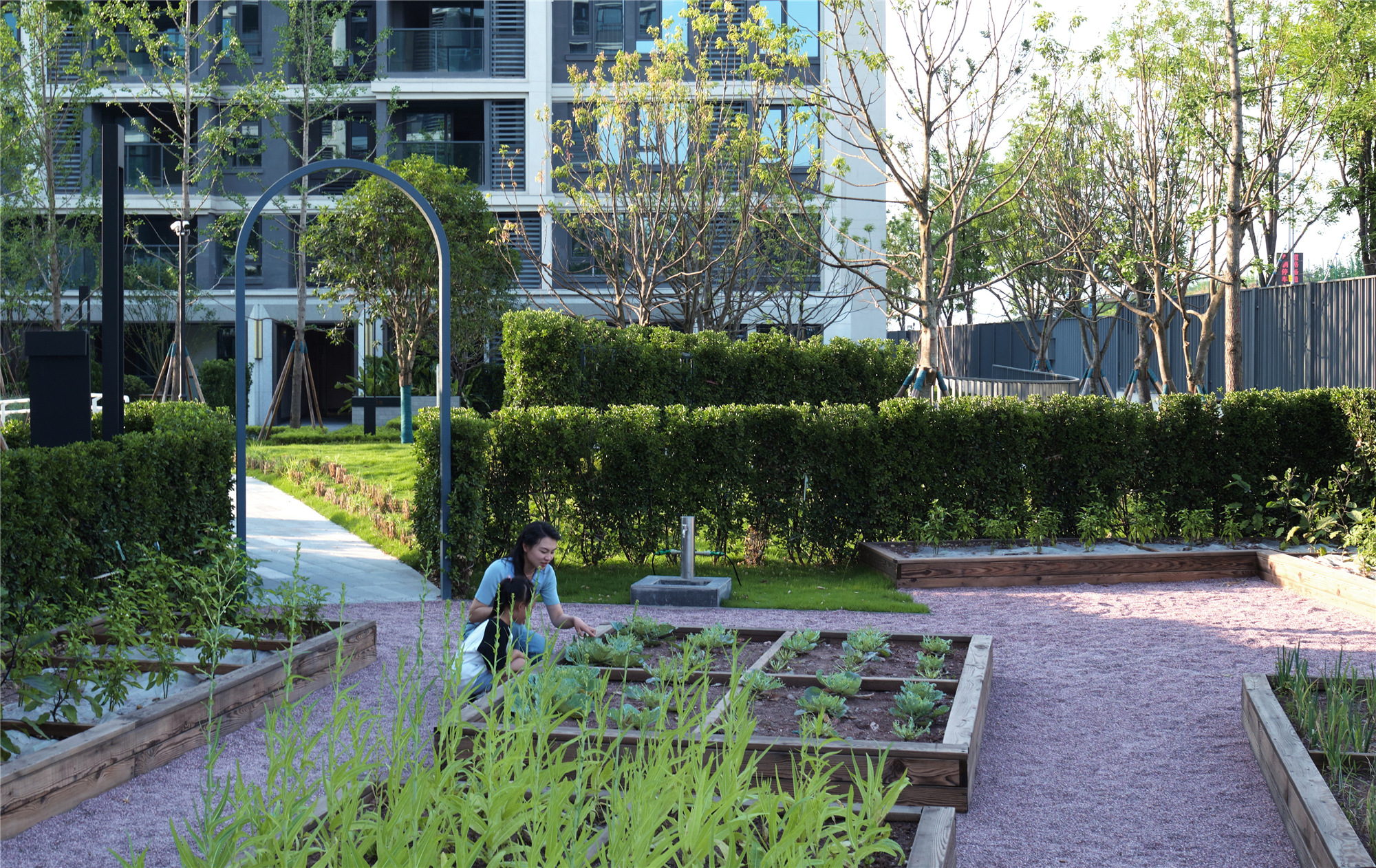 基于兒童友好的理念,園區(qū)還設(shè)置了“一米菜園”,讓小朋友們也一起參與到蔬菜水果的種植中,了解食物如何生長,珍惜食物得來的不易。