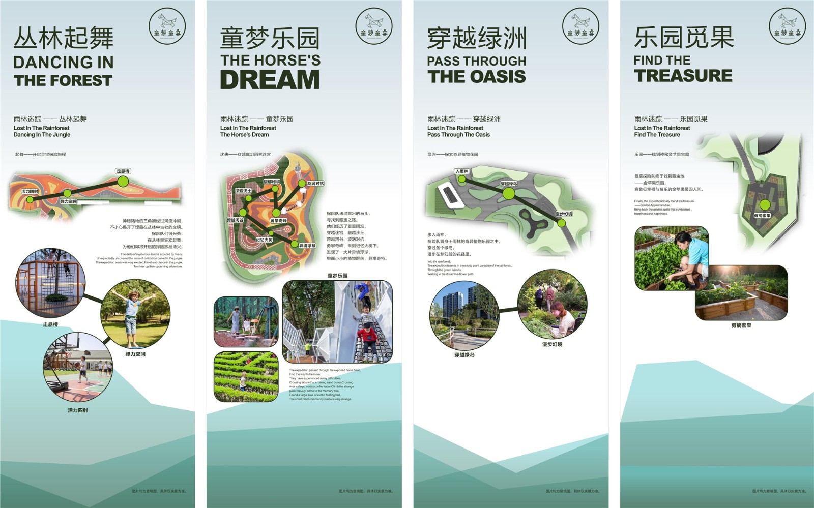 Through the wonderful story line of "Rainforest Trail", we connect adult fitness, children's activities, plant science popularization, and health facilities for the elderly. The venues intersect and are independent from each other to meet the needs of children and the elderly in need of care.