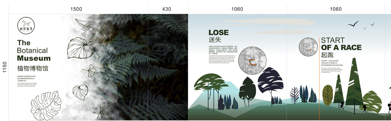 It combines the Dong Dong Ma IP image and geometric elements, which are overlapping and scattered. The overall colors take the warm tone, looking bright and comfortable from the children's perspective. In the Seven Ingenious Paradise, the "Plant Museum" adventure route is arranged for both fun and adventure, combined with plant science popularization. In a series of adventures, children can climb, crawl, cross and slide, to contact, explore, and recognize the world in the game.