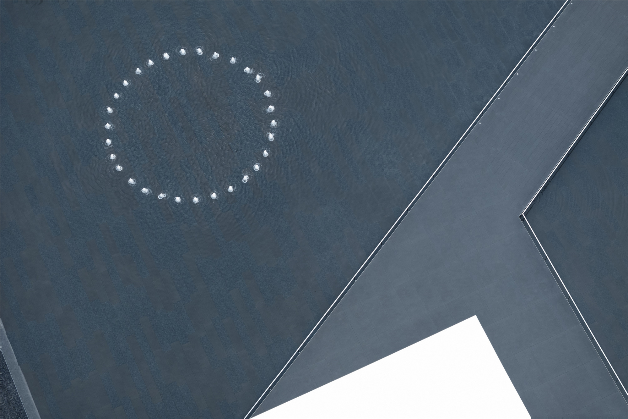 圓形的下沉活動(dòng)區(qū)繼續(xù)呼應(yīng)著建筑,在功能上,它也為人們提供了更多聚集和社交的可能性。此外,我們利用一系列景觀化的“捕捉”來抓取自然的光景,水的波瀾、陽光的折射、樹影的搖曳等。