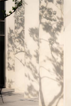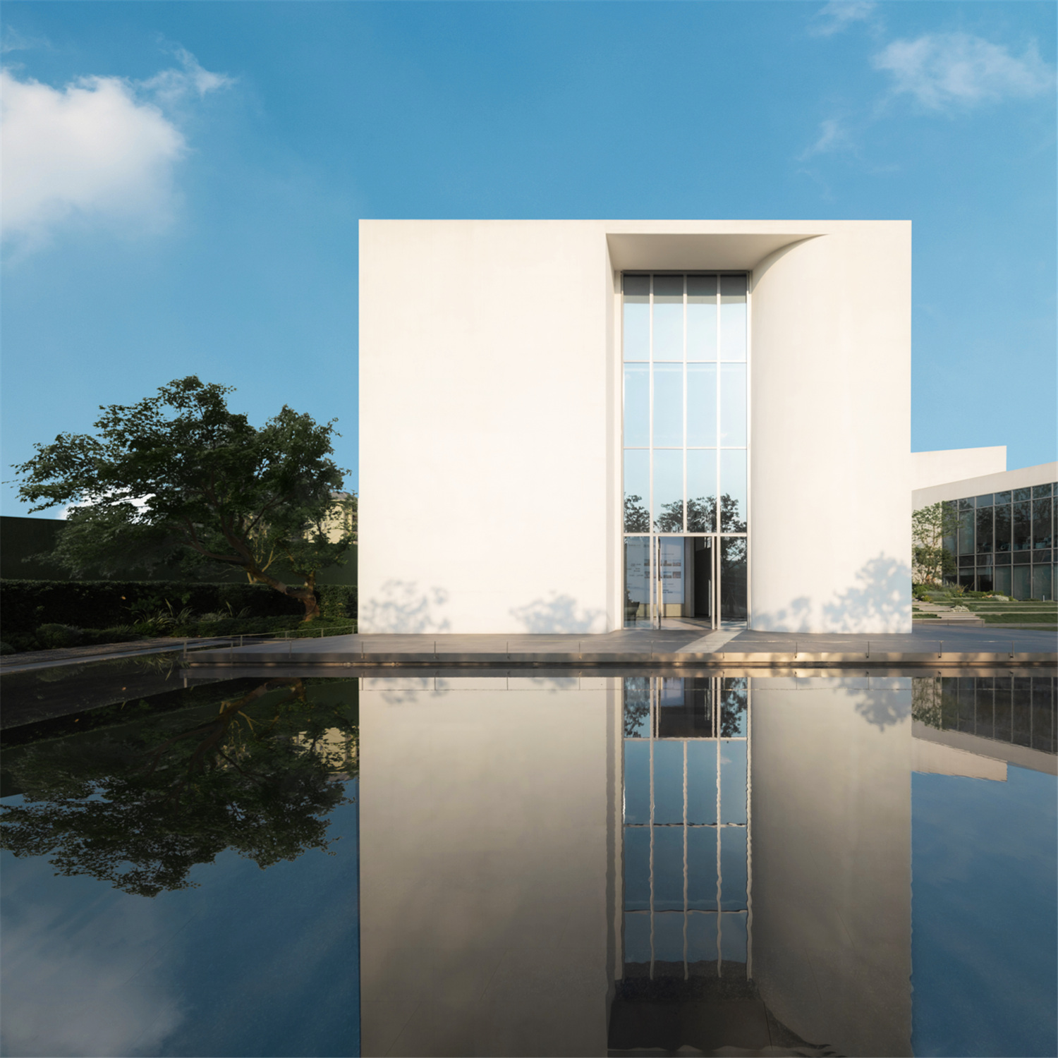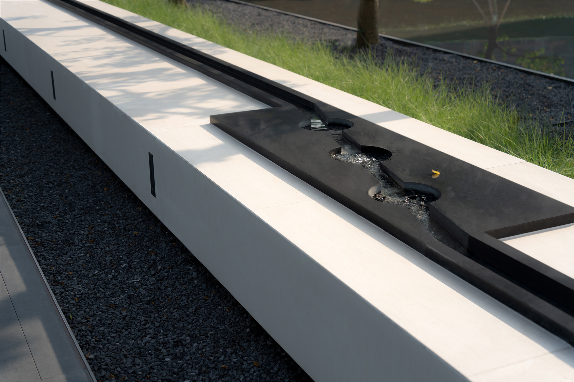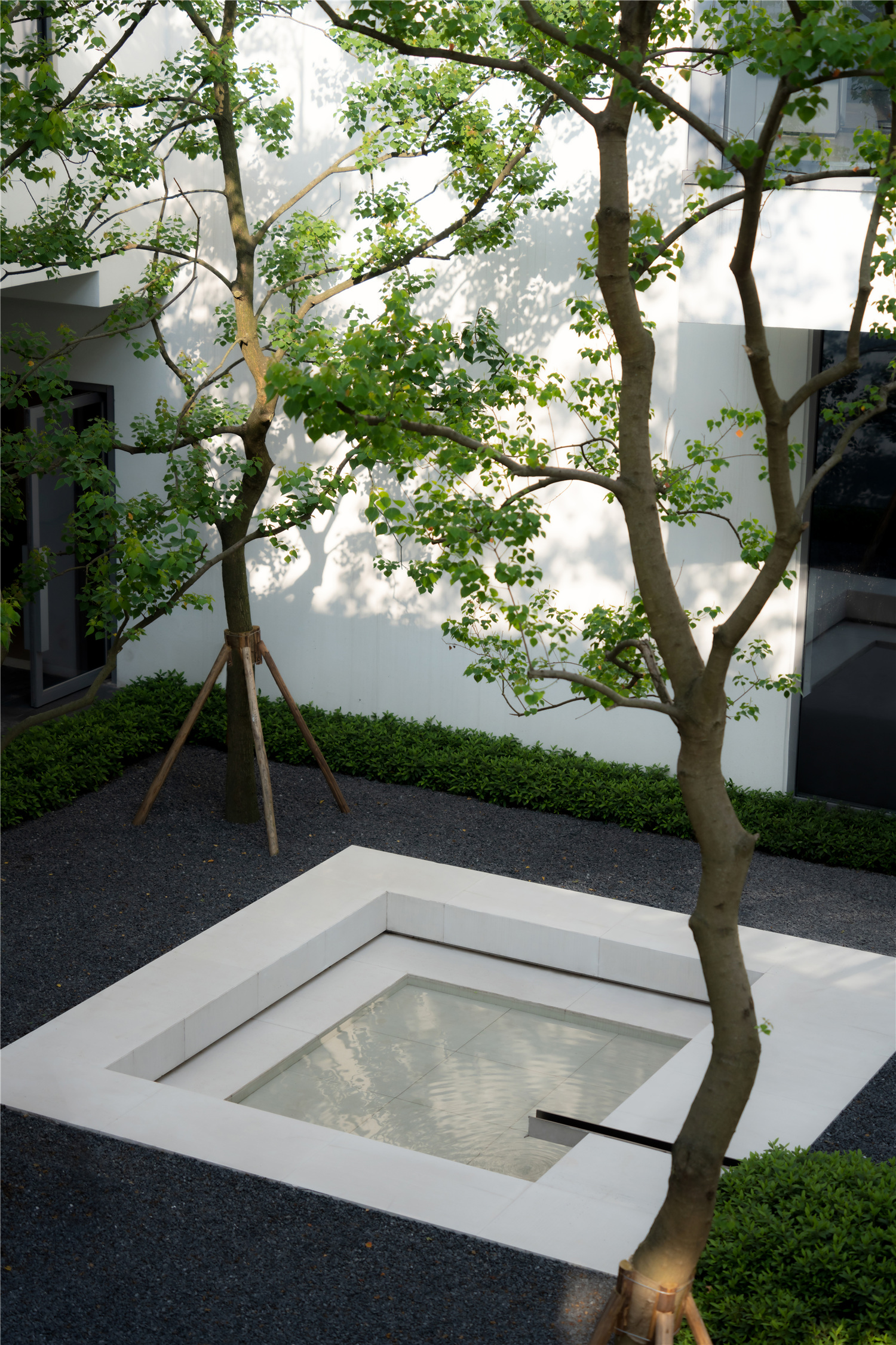 As an "outdoor" exhibition venue, it naturally intersects with all elements of nature. Elements from nature such as water and light, trees and shadows, are thus incorporated into it, together with the clean architectural outlines, they create a minimalist landscape narrative. In conclusion, our design goal is to create a naturally pure artistic space.