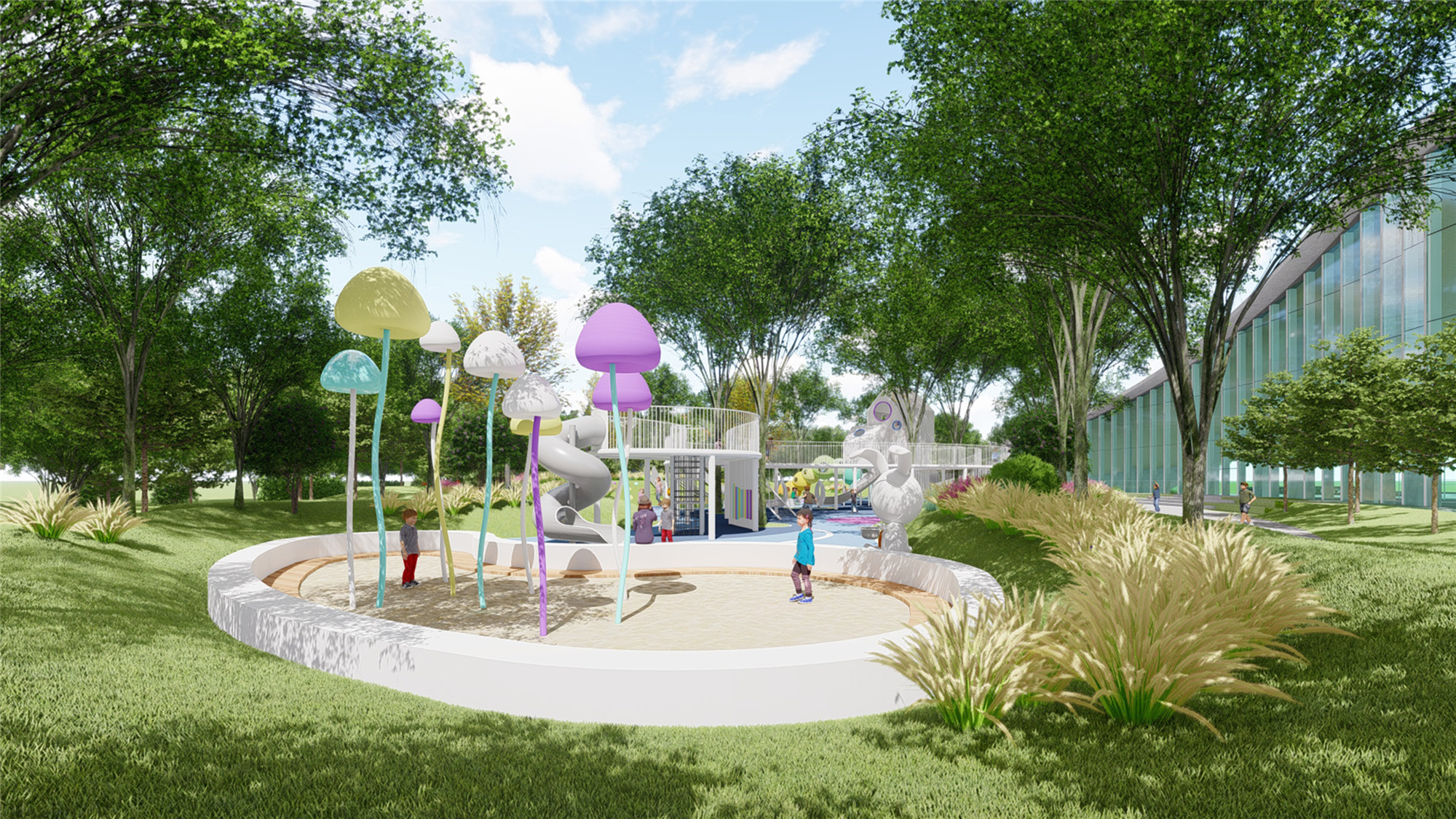 The dream mushroom logo at the entrance reflects the mushroom cluster IP of the dream forest. The music mushroom is located in the mushroom shaped bunker from the forest. It is an exclusive game interaction area designed for young children.